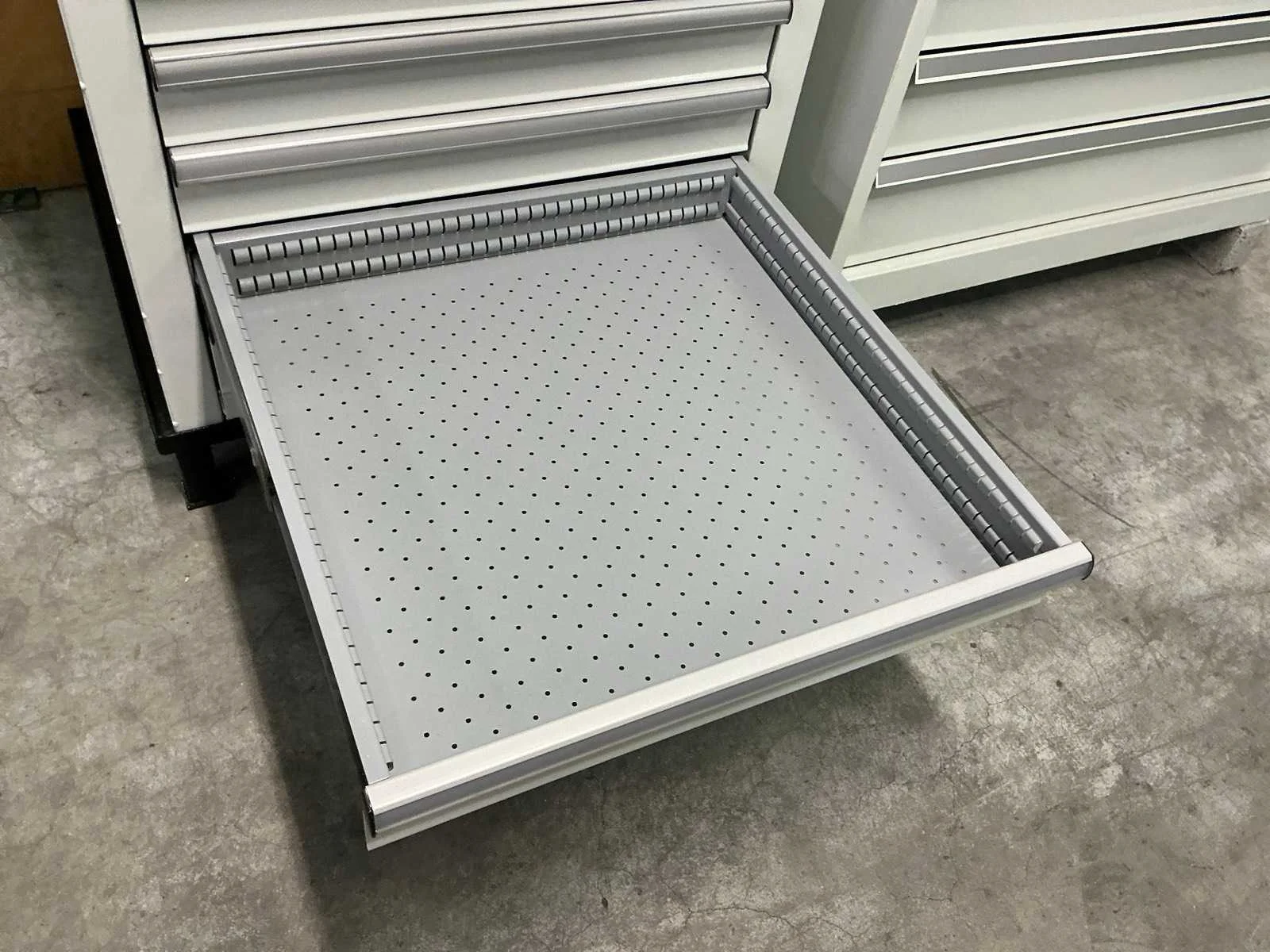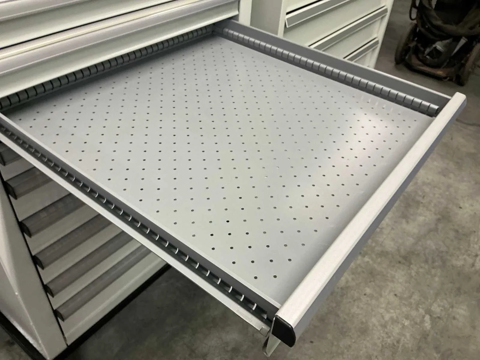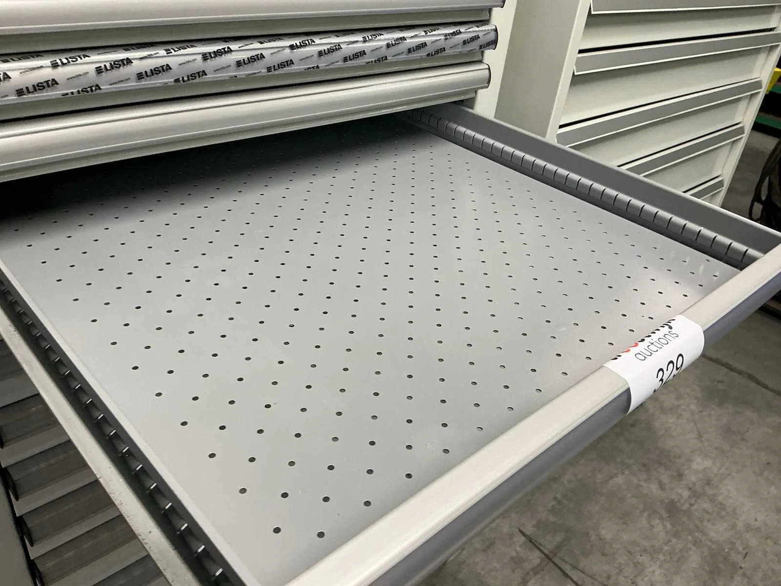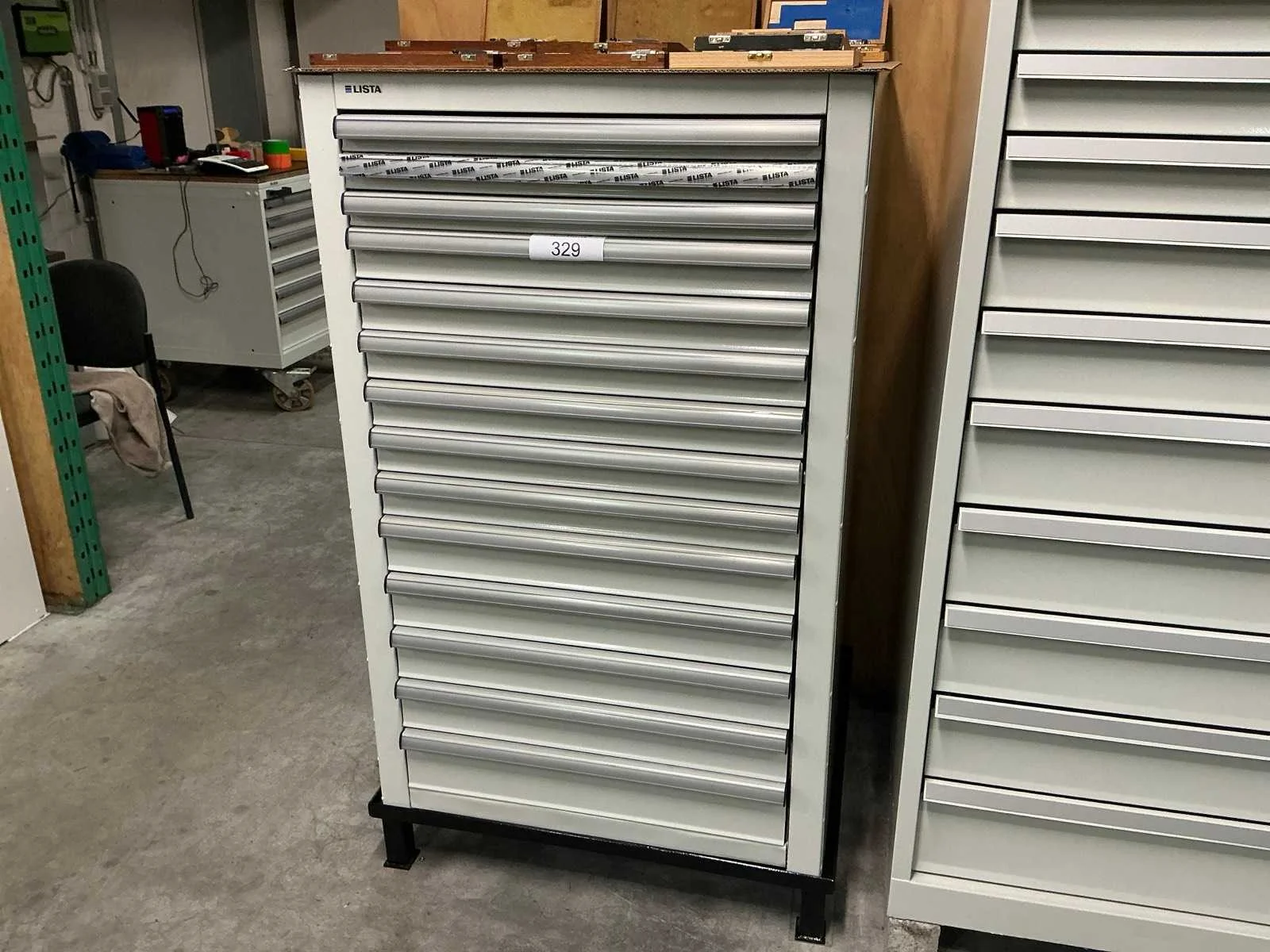 Fronthoogte lades: 3 lades met fronthoogte 50 mm/ 6 lades met fronthoogte 75 mm/ 4 lades met fronthoogte 100 mm/ 1 lade met fronthoogte 125 mm/ inclusief bijhorende metalen sokkel met hoogte 150mm Merk: Lista Kleur: RAL7035 Lengte: 70.5 Breedte: 77cm Hoogte: 125cm