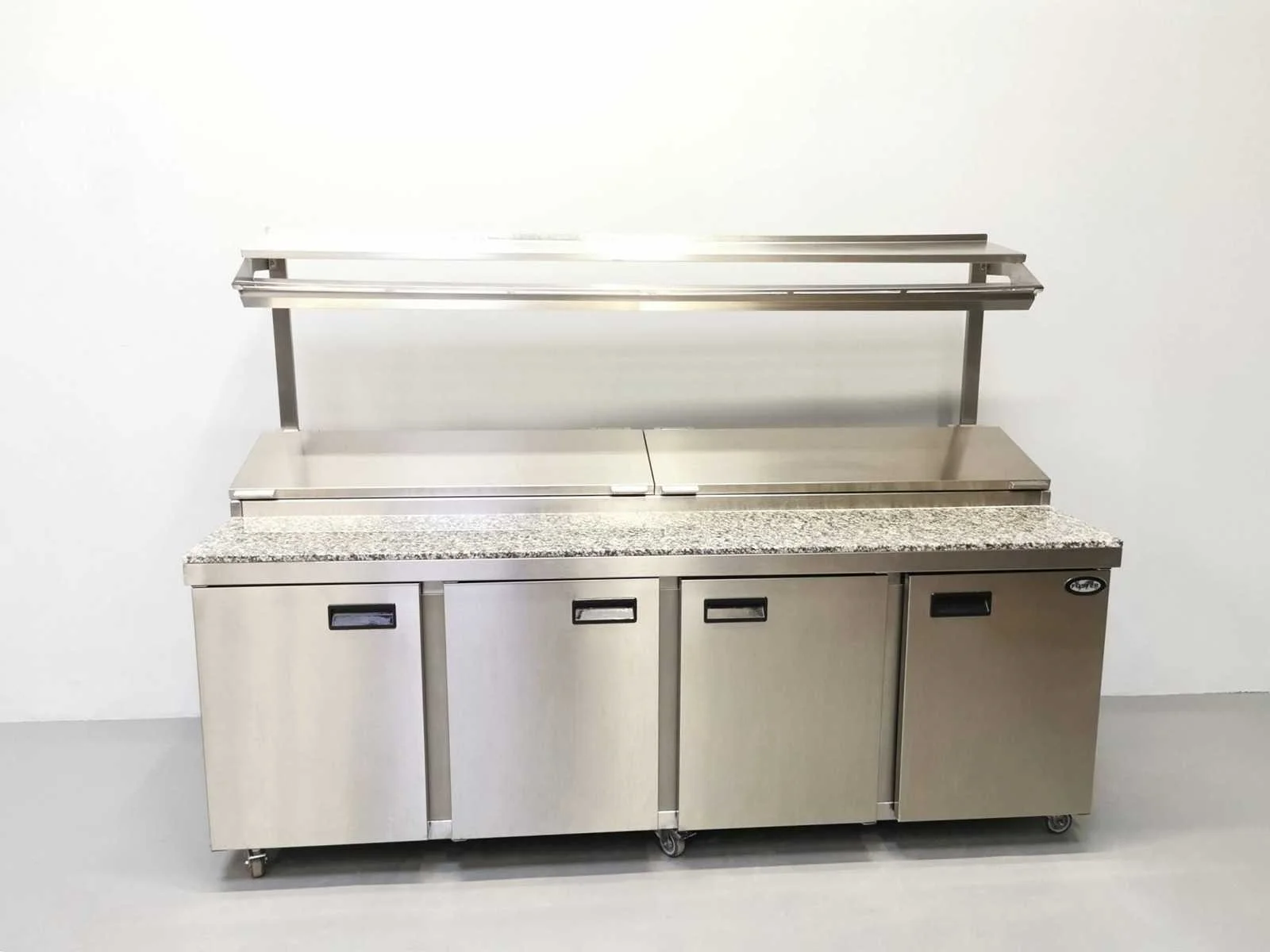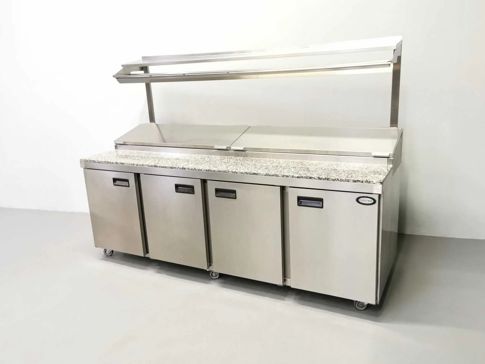 Voorzien van RVS dienbladen, marmeren werkblad, bovenste plank en bovenste opbergruimte Merk: Foster Type: FPS4GR Totale afmeting L: 230cm Totale afmeting Breedte: 85cm Totale afmeting Hoogte: 165cm Digitale uitlezing: true Ingebouwde koelcompressor: true Rvs: true Capaciteit.: 570l Aansluiting: 230V Mobiel: true