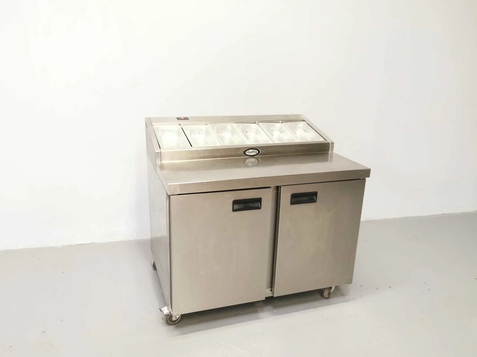 Voorzien van RVS trays. Merk: Foster Type: FPS2HR Totale afmeting L: 114cm Totale afmeting Breedte: 85cm Totale afmeting Hoogte: 110cm Digitale uitlezing: true Ingebouwde koelcompressor: true Rvs: true Aansluiting: 230V Mobiel: true