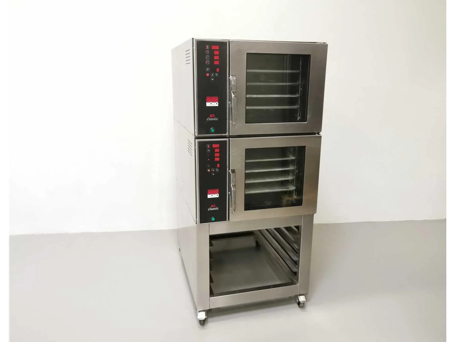 Dubbele stapel op verrijdbare trolley, voorzien van bakplaten, grote capaciteit, 3 FASE Merk: Mono Type: BX Classic Aantal niveau's: 8 Aansluiting: 380V Digitale besturing: true Elektrisch: true Rvs: true Totale afmeting L: 77cm Totale afmeting Breedte: 106cm Totale afmeting Hoogte: 76cm