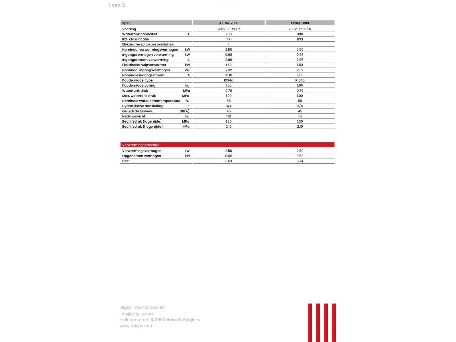200 liter, 2,5kW, 230V, ongebruikt, in originele verpakking, inclusief wifi-module Merk: Miglio Model: Arum-200L