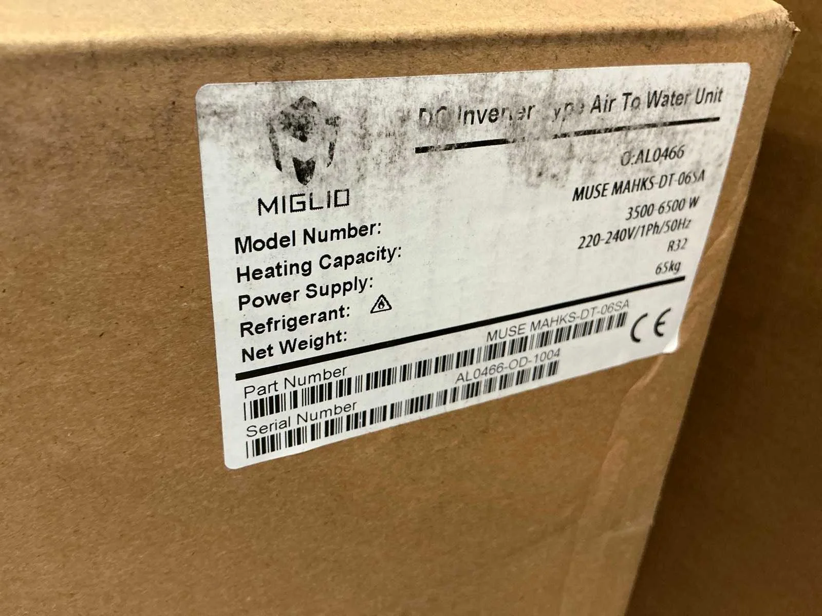 Verwarmen 6,5kW, koelen 7,5kW, 230V, ongebruikt, in originele verpakking Merk: Miglio Model: MUSE Product type: MAHKS-DT-06SA