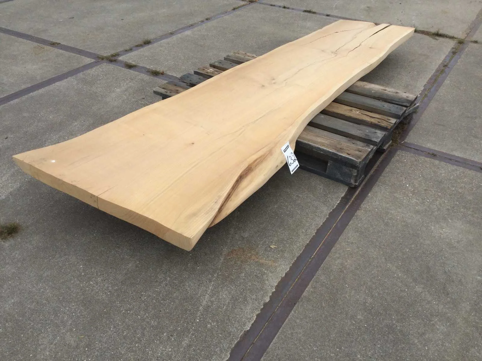 Omschrijving: geschuurd - buitengebruik - opmeting midden blad Afmeting l: 2630mm Afmeting b: 580mm Afmeting h: 55mm