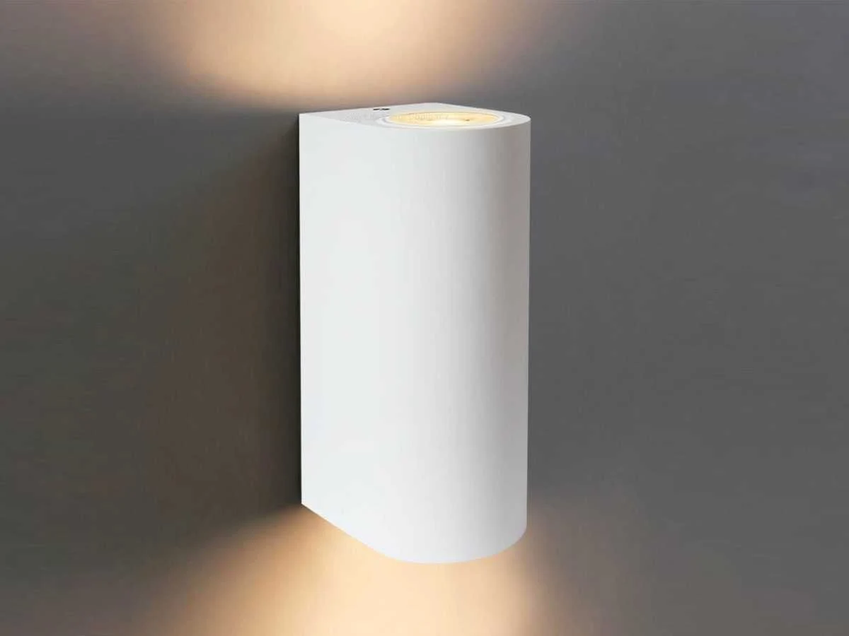 IP44 afdichting, afm. 92 x 68 x 150 mm, materiaal aluminum en glas diffuser, bevestiging inclusief, GU10 fitting, bulb niet inbegrepen, geschikt voor binnen en buiten, 2 x bulb invoer, voltage 220-240V, max 2 x 35 watt, SKU 00881 Merk: LAMPINNO Product type: Binnen en buiten Fitting: GU10 Kleur: Wit Lengte: 9.2cmcm Breedte: 6.8cmcm Hoogte: 15.0cmcm Materiaal: Aluminium en glas