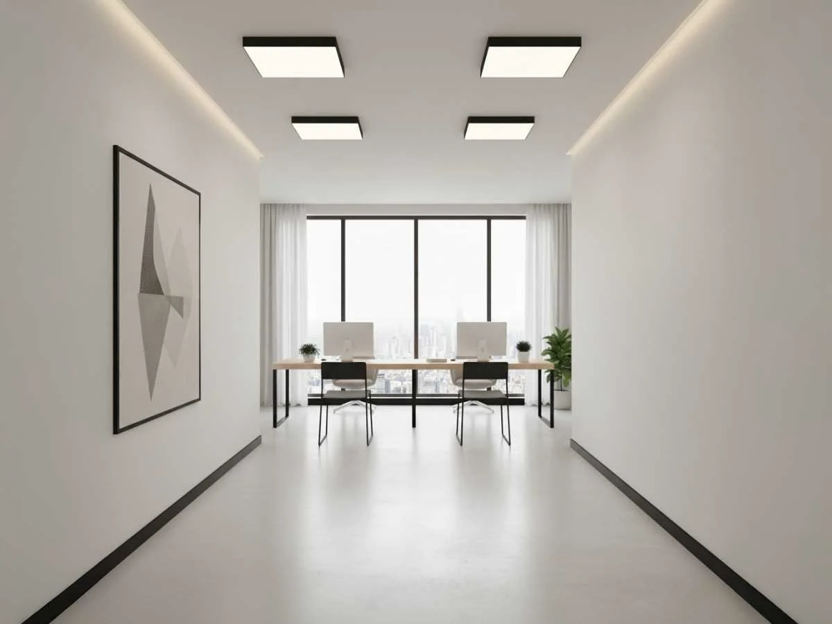 Lichtstroom 4600 lumen, flikervrij, lichtkleur neutraal wit 4000K, afdichting IP20, stralingshoek 120°, product kleur mat zwart, afm. 595 x 595 x 26 mm, materiaal aluminium, bevestigingsset niet inclusief, levensduur 25.000 uren, voltage 220-240V, sku 1128 Merk: LAMPINNO Product type: Industrieel en Binnen Kleur: Zwart Lengte: 59.5cm Breedte: 59.5cm Hoogte: 2.6cm Materiaal: Aluminium en PC