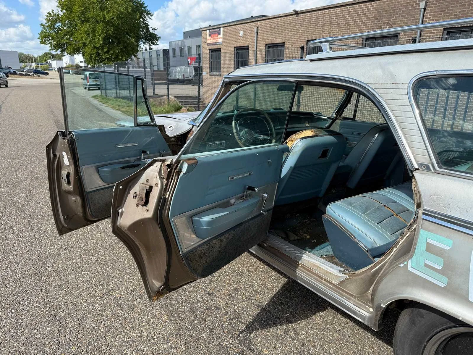 1964 Chrysler Hardtop Station wagon met Bigblock Mopar V8 en "push button" 727 automaat. Voorzien van stuur en rembekrachtiging. Rondom trommel remmen. Start/rijd maar wordt verkocht als restauratie project dat volledig nagelopen dient te worden! Interieur is in slechte staat en moet volledig vernieuwd worden 18inch Detroit steel wielen met doppen en ringen, maar ook zijn de originele 14inch staalvelgen en doppen aanwezig Usa title en invoer papieren, invoer kosten zijn voldaan. Merk: Chrysler Model: Hardtop Type: Wagon Datum eerste toelating: 1964 Boorddocumenten aanwezig?: true Nationaliteit documenten: Verenigde Staten van Amerika Kentekenpapieren compleet?: true Aandrijving: Achterste Transmissie: 727 Automaat Startinformatie: Start, rijd, remt Aantal cilinders: 8