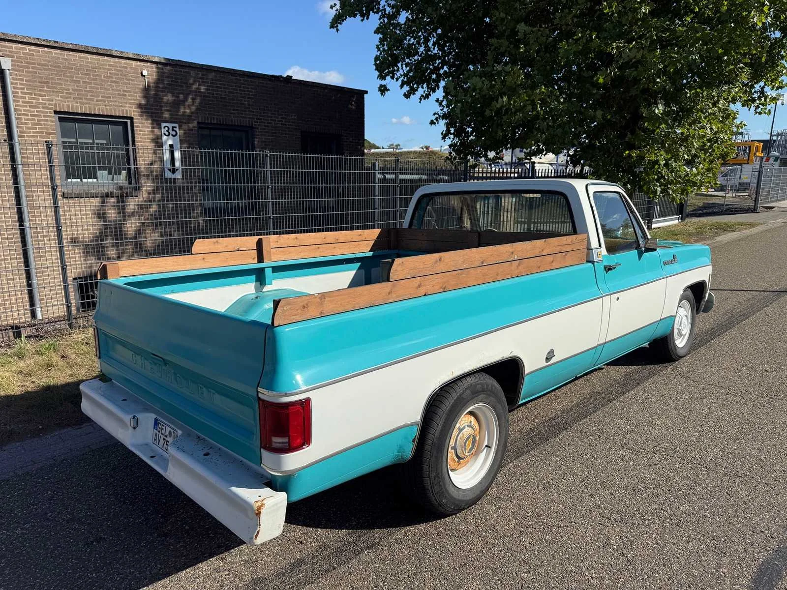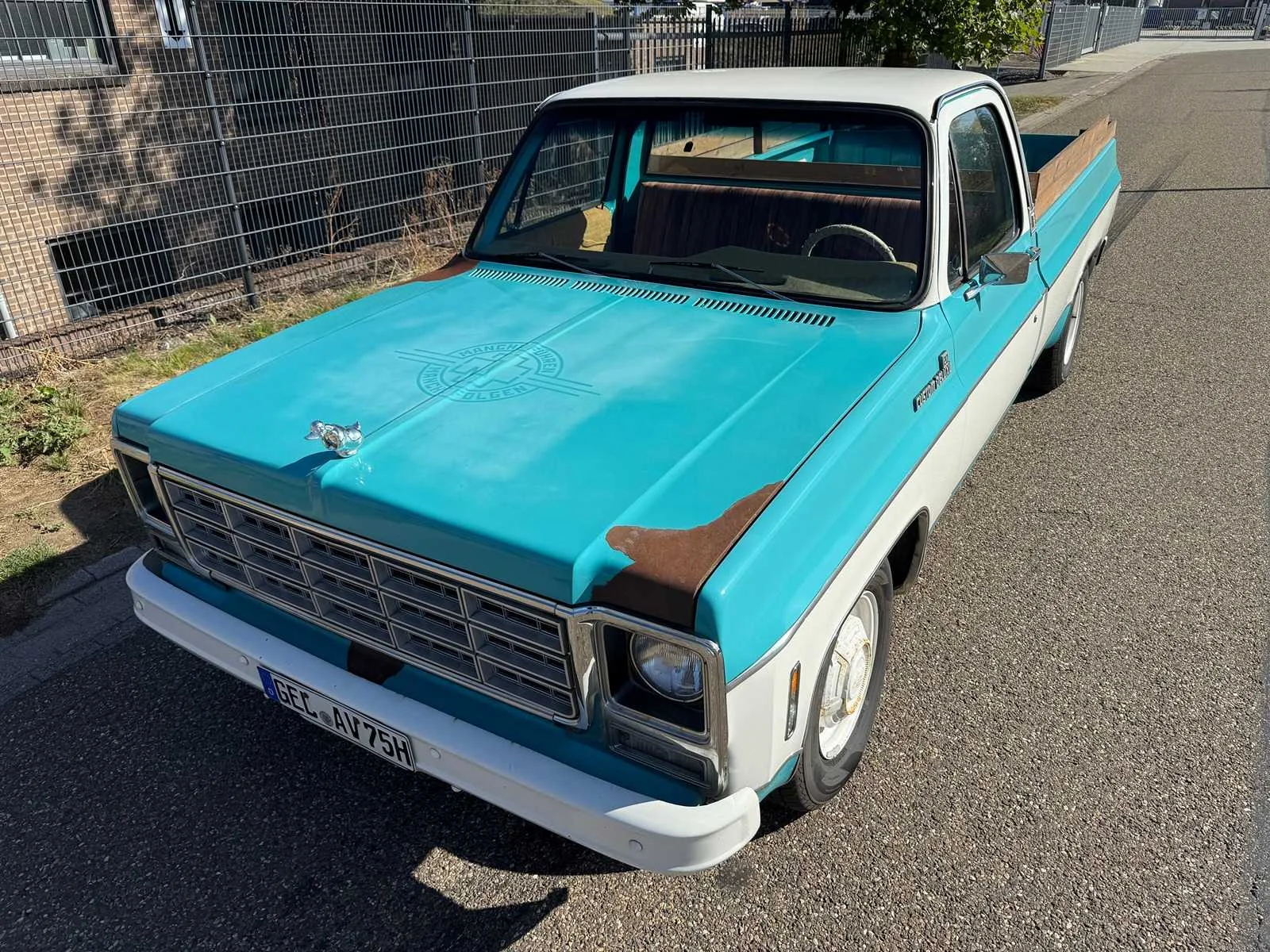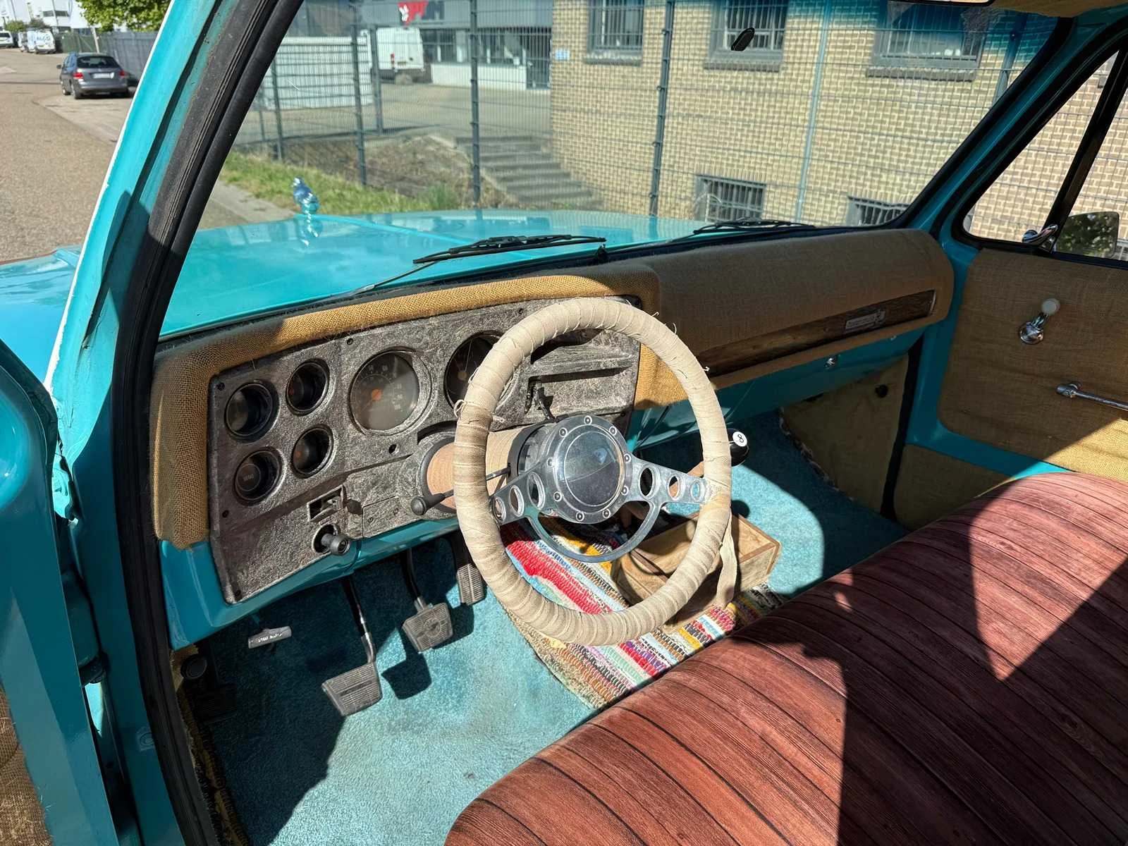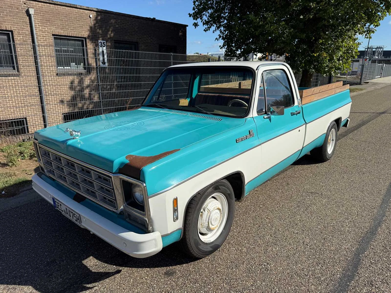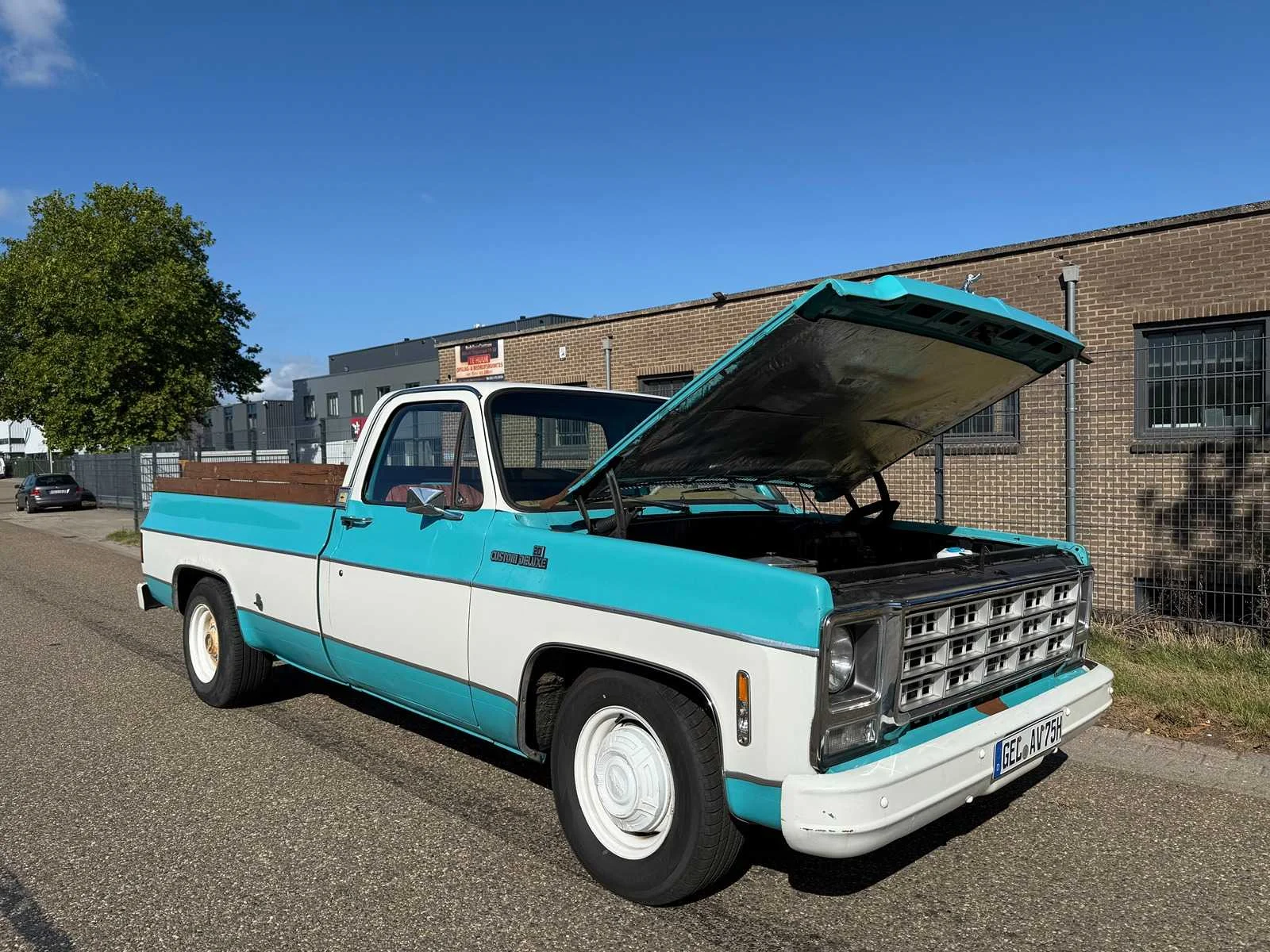 Chevrolet C-20 Longbed Fleetside Pickup met 350ci 5.7L V8 motor en 4 gang handgeschakeld transmissie. Voorzien van stuur en rembekrachtiging en schijfremmen aan de voorzijde. Goed rijdende auto. Diverse plekken in roest lak geschilderd Achterscherm aan de laadbak zit roest aan en dient voor het mooie gelast en gespoten te worden. Voorzien van Duitse papieren met tuv tot 2026 Chassisnummer: CCY245F400756 Merk: Chevrolet Model: C-20 Type: Longbed Fleetside Brandstof: benzine Datum eerste toelating: 1975 Boorddocumenten aanwezig?: true Nationaliteit documenten: DE Kentekenpapieren compleet?: true Carrosserie: Pickup Aandrijving: Rear Transmissie: Manual Stuurwiel: Left Startinformatie: Start/Drive/Brake Kleur: Blue Cilinderinhoud: 5700 Aantal cilinders: 6