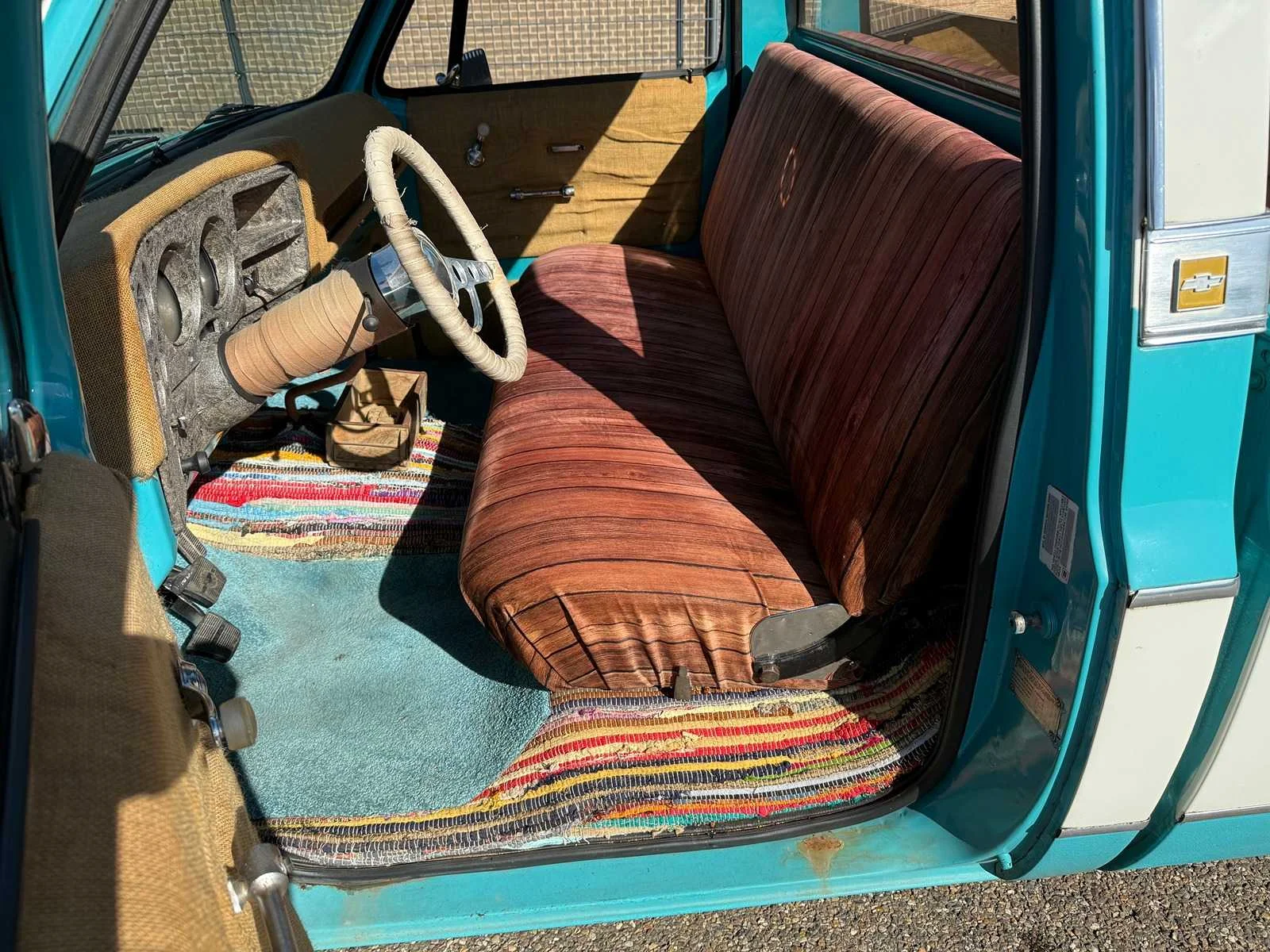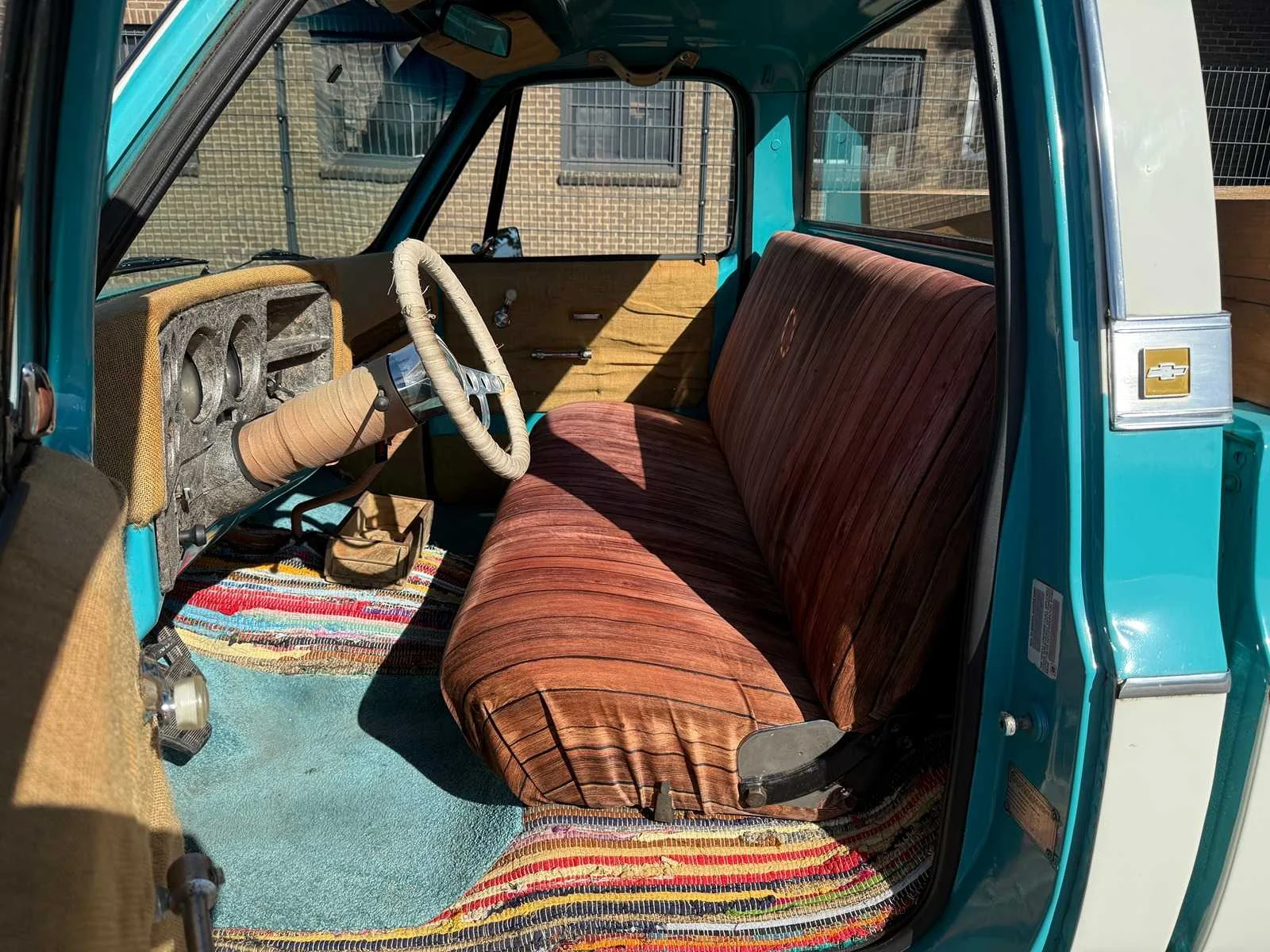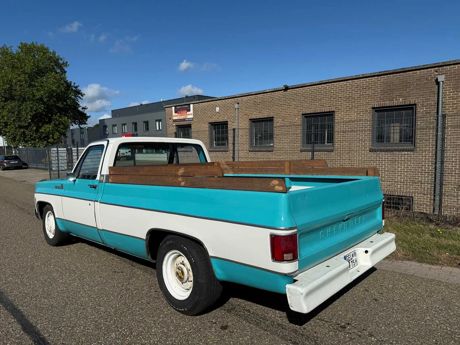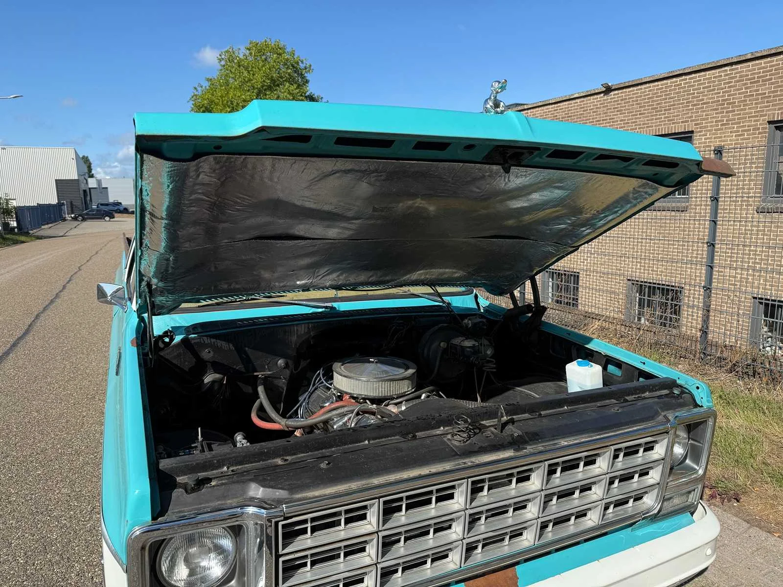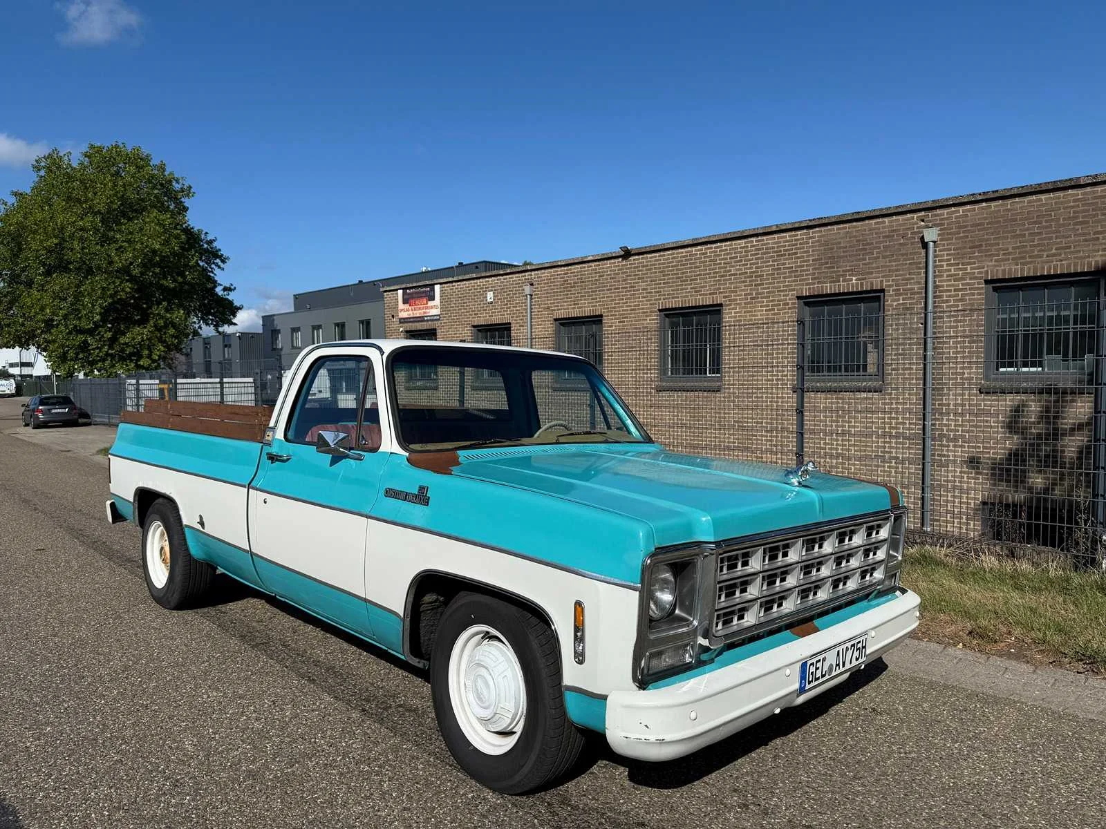 Chevrolet C-20 Longbed Fleetside Pickup met 350ci 5.7L V8 motor en 4 gang handgeschakeld transmissie. Voorzien van stuur en rembekrachtiging en schijfremmen aan de voorzijde. Goed rijdende auto. Diverse plekken in roest lak geschilderd Achterscherm aan de laadbak zit roest aan en dient voor het mooie gelast en gespoten te worden. Voorzien van Duitse papieren met tuv tot 2026 Chassisnummer: CCY245F400756 Merk: Chevrolet Model: C-20 Type: Longbed Fleetside Brandstof: benzine Datum eerste toelating: 1975 Boorddocumenten aanwezig?: true Nationaliteit documenten: DE Kentekenpapieren compleet?: true Carrosserie: Pickup Aandrijving: Rear Transmissie: Manual Stuurwiel: Left Startinformatie: Start/Drive/Brake Kleur: Blue Cilinderinhoud: 5700 Aantal cilinders: 6
