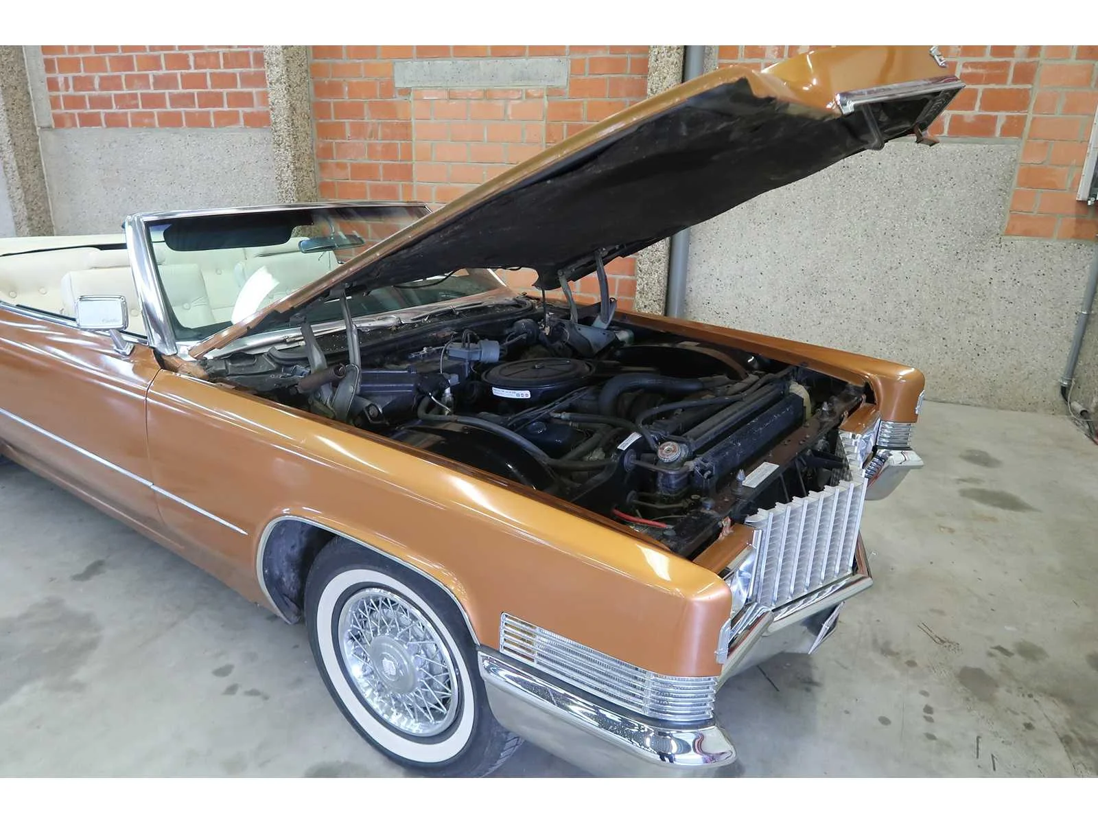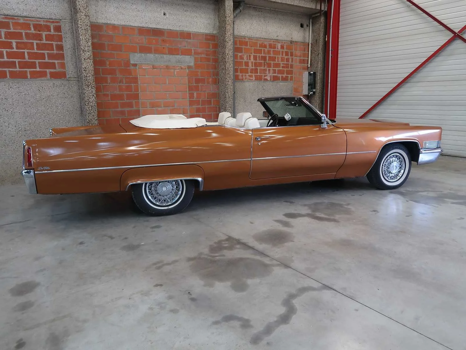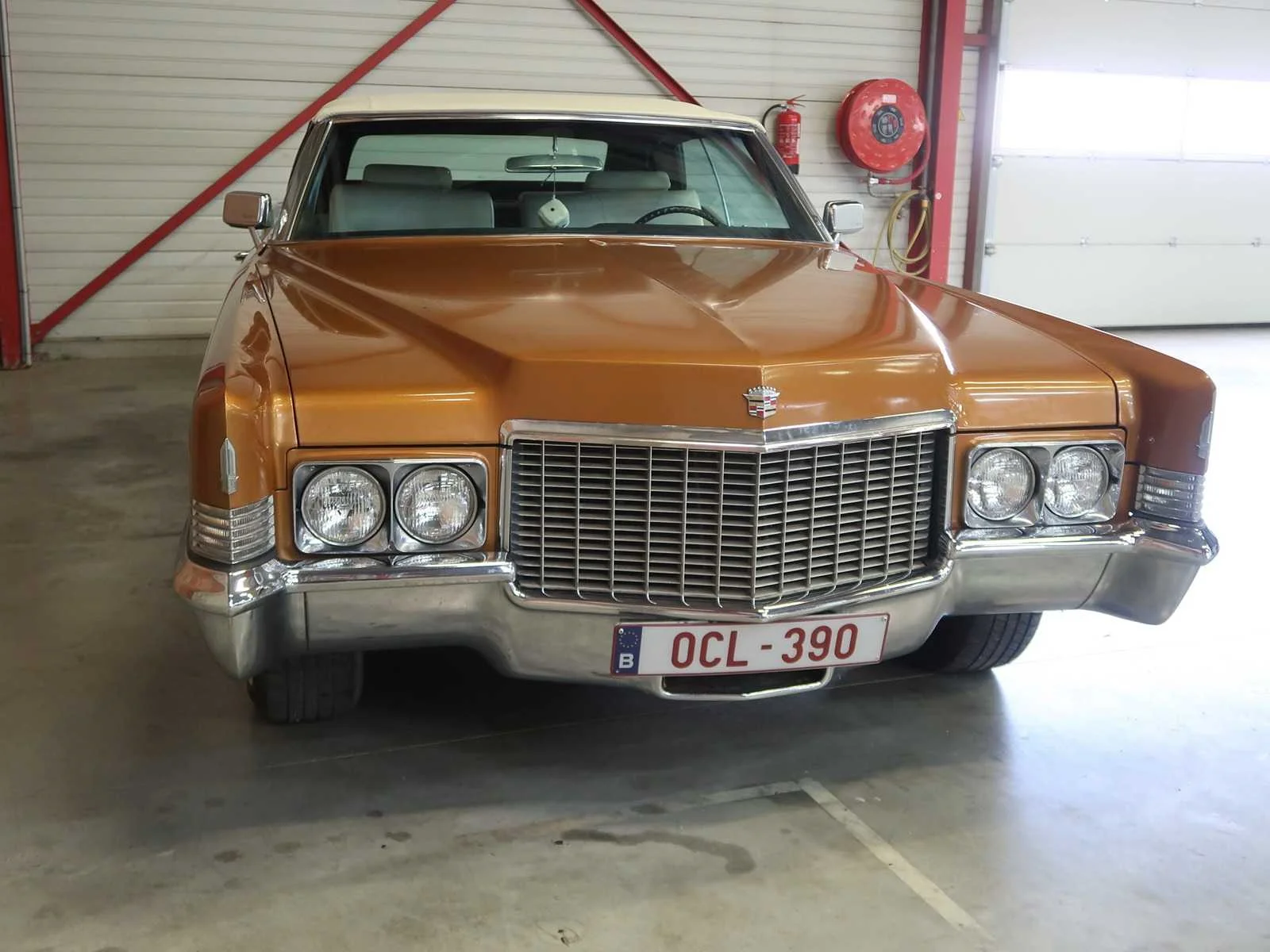 Zeer mooie en vooral volledig originele Cadillac. Wagen komt van de eerste eigenaar uit USA. Historiek volledig gekend. Wegens ziekte heeft de huidige eigenaar beslist de wagen te verkopen. Waarschijnlijk een van de weinig originele Cadillac Deville met de volledige historiek, die er nog te vinden zijn. Wagen heeft 3 jaar stilgestaan. Start, loopt en rijdt goed, maar kan nog een klein beetje aandacht gebruiken in het geven van een grote beurt en wat extra poetswerk. Chassisnummer: F0272615 Merk: Cadillac Model: DeVille Type: Cabriolet Afgelezen kilometerstand: 61578km Brandstof: Benzine Datum eerste toelating: 15/09/1970 Boorddocumenten aanwezig?: true Nationaliteit documenten: BE Carrosserie: Cabriolet Transmissie: Automaat Vermogen (pk): 375 Aantal deuren: 2 Aantal zitplaatsen: 4 Stuurwiel: Left Aantal sleutels: 3 Accessoires - checkbox: Originele owners manual Startinformatie: Start, rijd, remt Kleur: Oranje Cilinderinhoud: 7700 Aantal cilinders: 8 Ledig gewicht: 2108