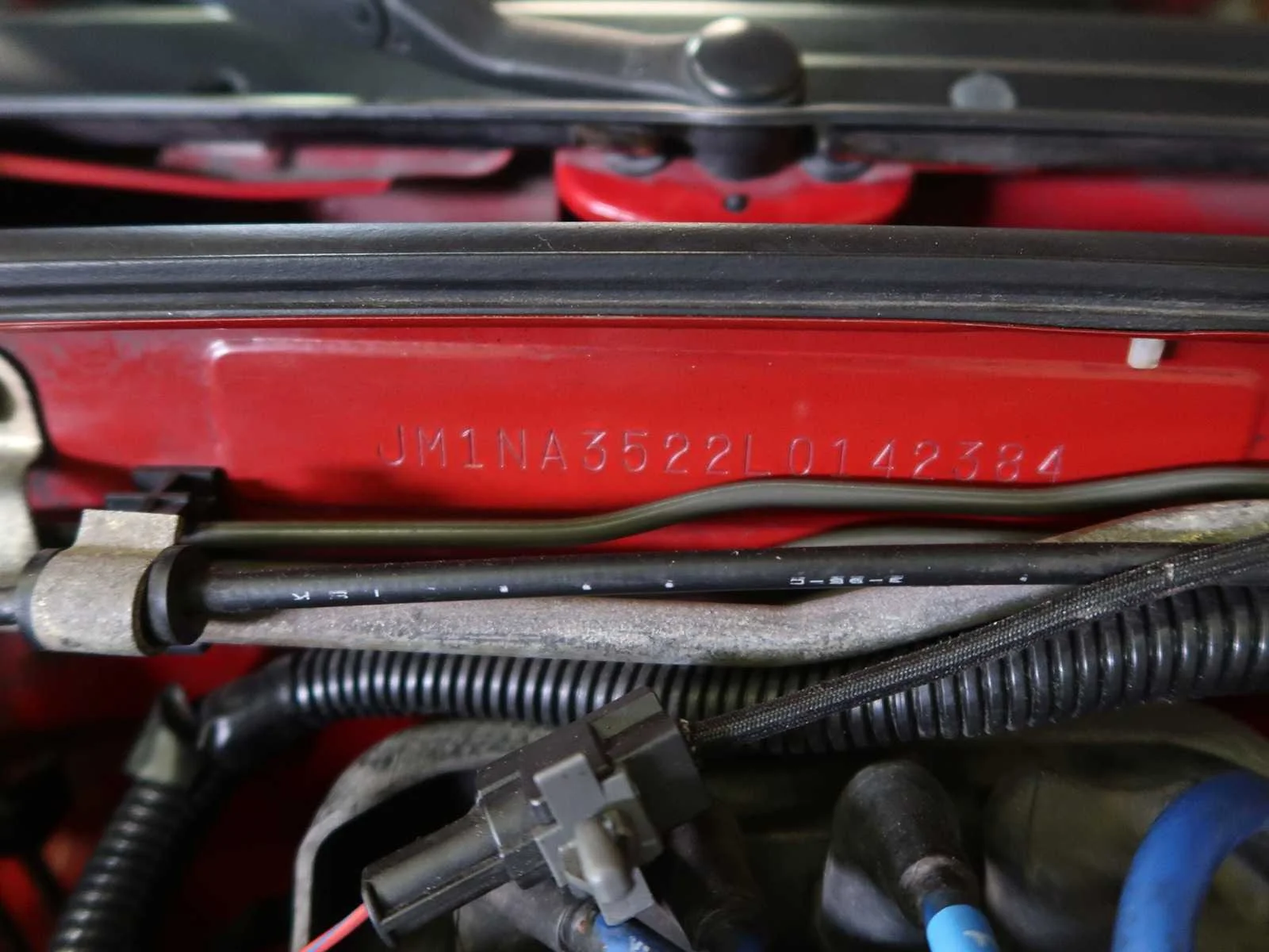 Miata in mooie en originele staat. Chassisnummer: JM1NA3522L0142384 Merk: Mazda Model: MX5 Type: Miata Afgelezen kilometerstand: 231393km Brandstof: benzine Datum eerste toelating: 1990 Nationaliteit documenten: Verenigde Staten van Amerika Carrosserie: Cabriolet/roadster Aandrijving: Achterste Transmissie: Handgeschakelde 5 versnellingen Vermogen (pk): 113 Vermogen (kW): 85 Aantal deuren: 3 Aantal zitplaatsen: 2 Stuurwiel: Links Startinformatie: Start, rijden, remmen Kleur: red Cilinderinhoud: 1598 Aantal cilinders: 4 Ledig gewicht: 950