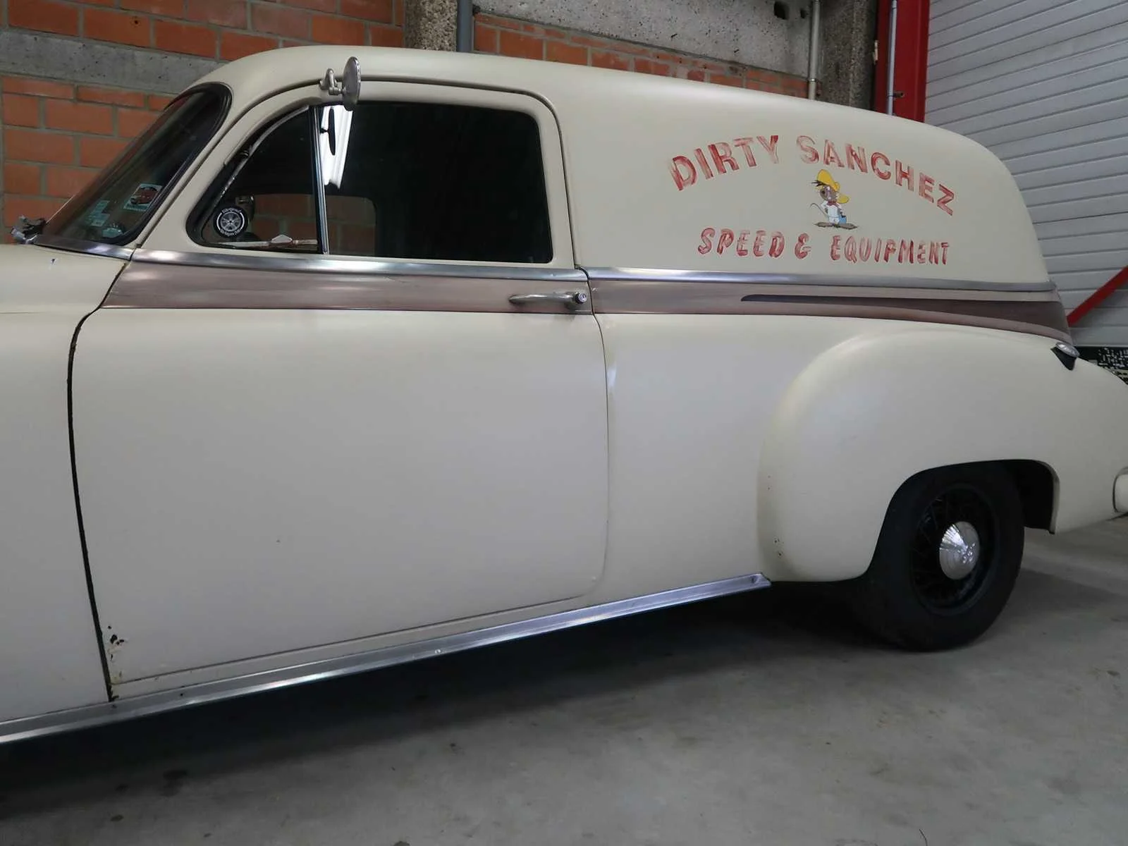 Mooie "RAT" look Chevrolet Delevery Van. Start, rijdt en remt naar behoren. Auto kwam uit de VS. Nu geregistreerd in België. Chassisnummer: 792179632 Merk: Chevrolet Model: Station Wagon Type: Delivery Van Brandstof: benzine Datum eerste toelating: 1952 Nationaliteit documenten: ZIJN Carrosserie: Stationwagen Aandrijving: Achterste Transmissie: Automatisch Aantal deuren: 2 Aantal zitplaatsen: 3 Stuurwiel: Links Aantal sleutels: 1 Startinformatie: Start, rijden, remmen Kleur: beige Cilinderinhoud: 5700 Aantal cilinders: 8 APK vervaldatum: 23/01/2030 Afgelezen mijlenstand: 78290mi Bouwjaar: 1952
