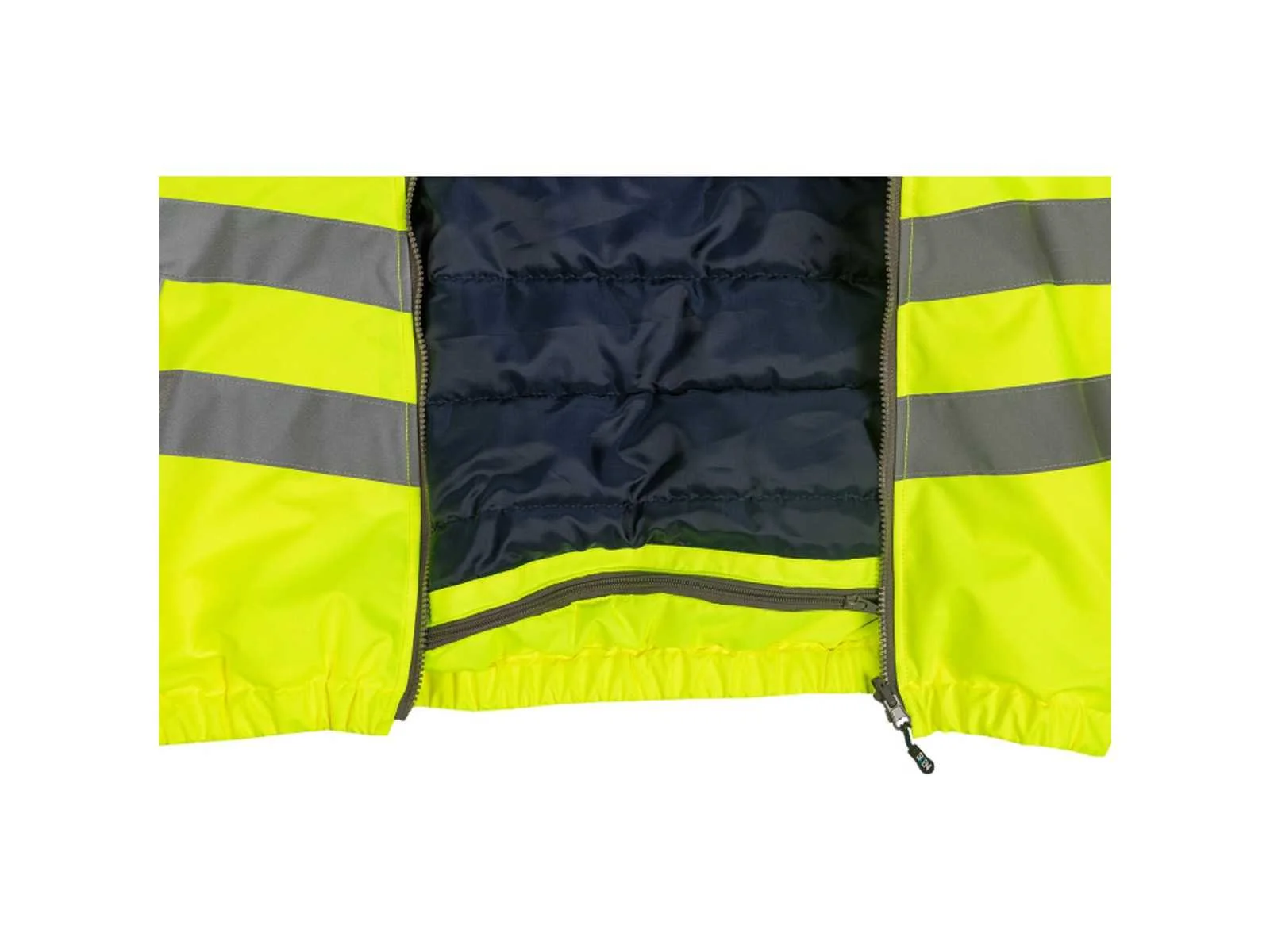 Waterdicht; afneembare capuchon; uitritsbare bodywarmer Merk: Sioen Model: Etton 4-in 1 jas Kleur: hi vis oranje