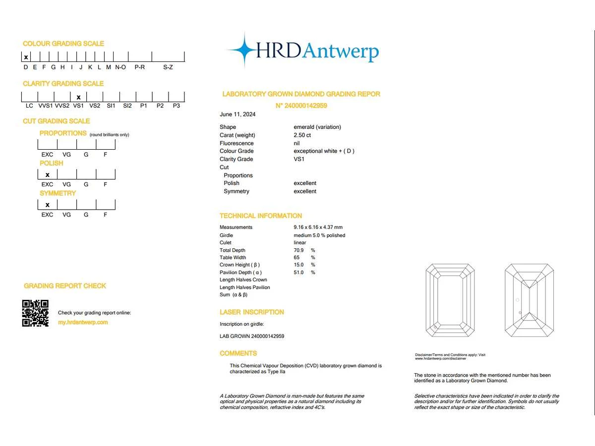 De ringmaat kan aangepast worden naar wens, hiervoor zal contact opgenomen worden met de klant binnen de 2 dagen na de betaling. het vermelde gewicht betreft enkel het goudgewicht, exclusief de ingezette diamant. Bezorgtermijn 7 dagen Product type: 18k geelgoud Voornaamste diamant: Labgrown diamant (CVD) Kleur diamant: D Gewicht diamant: 2.50ct Slijpvorm diamant: emerald Zuiverheidsgraad diamant: VS1 Gewicht: 3.45g Materiaal: geelgoud Leveringsvoorwaarden: Per koerier