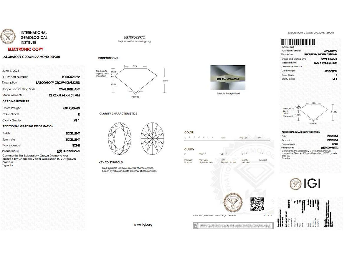 De ringmaat kan aangepast worden naar wens, hiervoor zal contact opgenomen worden met de klant binnen de 2 dagen na het sluiten van de veiling. Bezorgtermijn 7 dagen Voornaamste diamant: Labgrown diamant (CVD) Kleur diamant: E Gewicht diamant: 4.04ct Slijpvorm diamant: ovaal Zuiverheidsgraad diamant: VS1 Gewicht: 3.54g Leveringsvoorwaarden: Per koerier