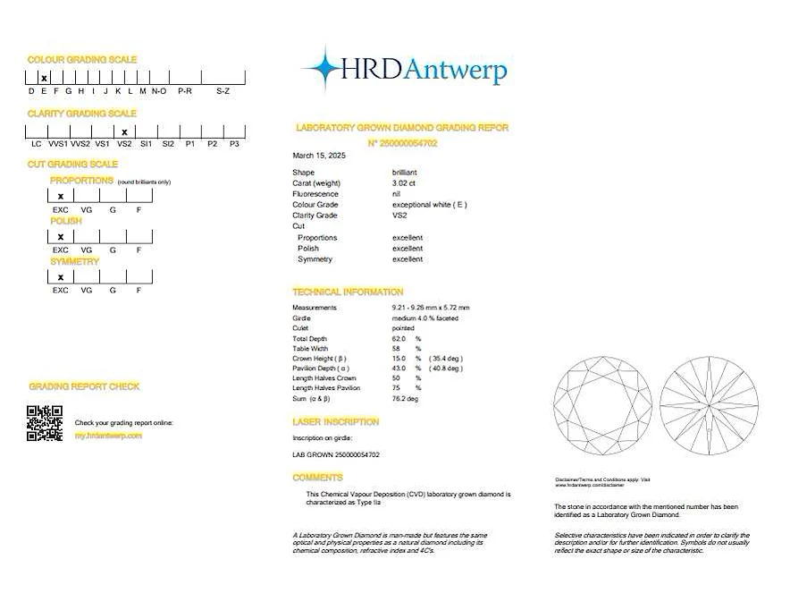 De ringmaat kan aangepast worden naar wens, hiervoor zal contact opgenomen worden met de klant binnen de 2 dagen na de betaling. het vermelde gewicht betreft enkel het goudgewicht, exclusief de ingezette diamant. Bezorgtermijn 7 dagen Product type: 18k witgoud Voornaamste diamant: Labgrown diamant (CVD) Kleur diamant: E Gewicht diamant: 3.02ct Zuiverheidsgraad diamant: VS2 Gewicht: 4.27g