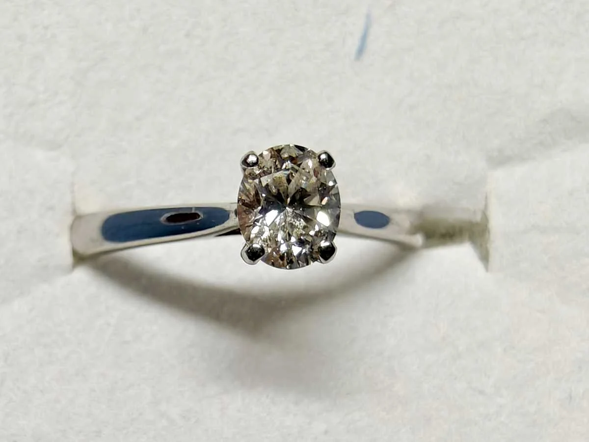 950 platina ring bezet met 5,5 * 4,5 mm ovale natuurlijke gedolven diamanten ring. Totaal bruto gewicht-4,61, maat-EU 53 Europees. Ca. 0.40Cts Diamant Gewicht van Kleur - EF Calrity-VS. Geen certificaat, inclusief sieradendoosje.Historische verkoopprijs: €2999. Al Onze Kavels Worden Verzonden In Fedex Dozen Door Hoge Prioriteit. U ontvangt snel een trackingcode nadat u voor de veilingkavels heeft betaald. Het wordt meestal binnen 7-14 dagen verzonden en de levering vindt plaats in 24-48 uur daarna. De kavels zijn verzekerd en vooruitbetaald door de verkoper. Brits keurmerk voor metaaltesten. Materiaal: Platinum Kleur: White Voornaamste diamant: Natural Mined Diamond Gewicht diamant: 0.40ct Totaal gewicht: 4.61g Kleur diamant: EF Zuiverheidsgraad diamant: VS