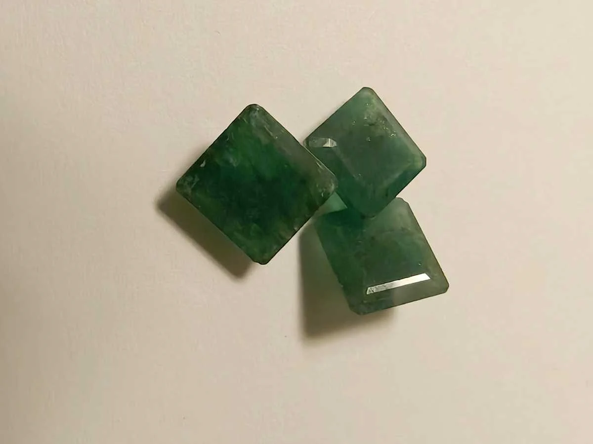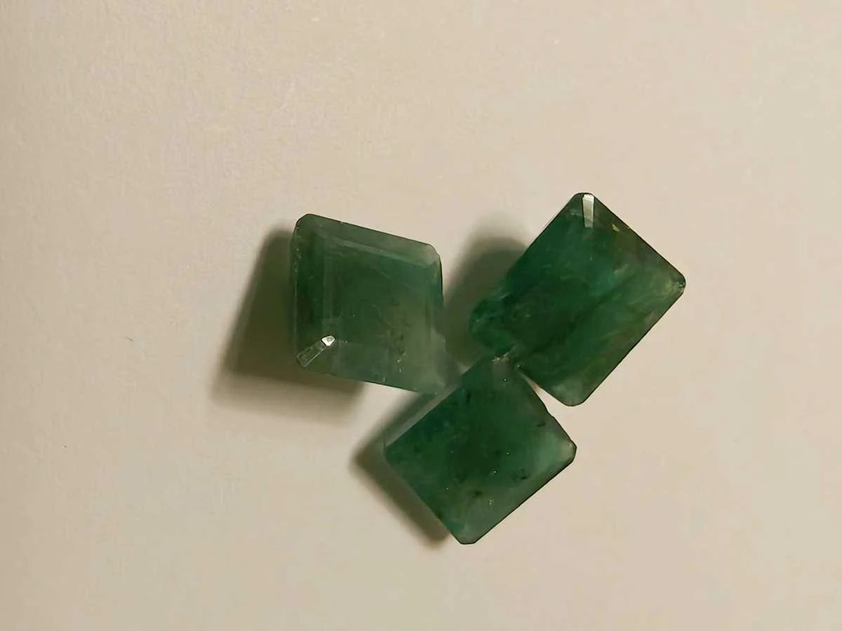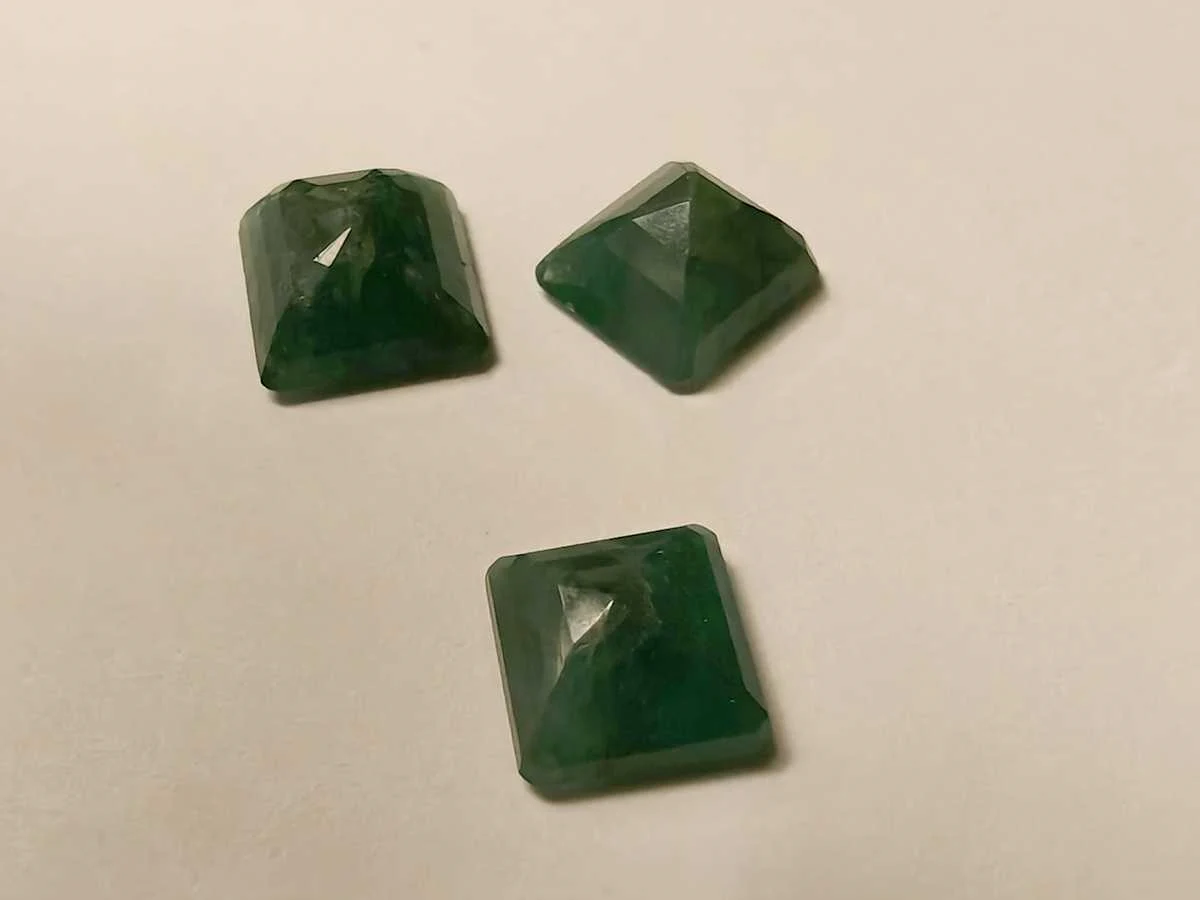 3 Gepolijste natuurlijke smaragden. 8.30Cts, Opruiming kavel. Dit zijn natuurlijke, onbehandelde groene smaragden! Vierkant vormig. Historische verkoopprijs: €4175. Al onze kavels worden verzonden in Fedex-dozen met hoge prioriteit. U ontvangt een trackingcode kort nadat u de veilingkavels heeft betaald. Het wordt meestal binnen 7-14 dagen verzonden en de levering vindt plaats in 24-48 uur daarna. De kavels zijn verzekerd en vooruitbetaald door de verkoper. Geen certificaat inbegrepen, wordt verpakt in een verzegelde of edelstenen doos. Edelsteen: Emerald Kleur edelsteen: Natural green Gewicht edelsteen: 8.30 Slijpvorm edelsteen: Square Shaped