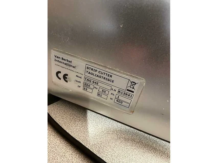 Sliertensnijder voor vlees; 4mm reepjes; rvs messen; Merk: Berkel Type: TAG94E Aansluiting: 230V Totale afmeting L: 200mm Totale afmeting Breedte: 480mm Totale afmeting Hoogte: 480mm