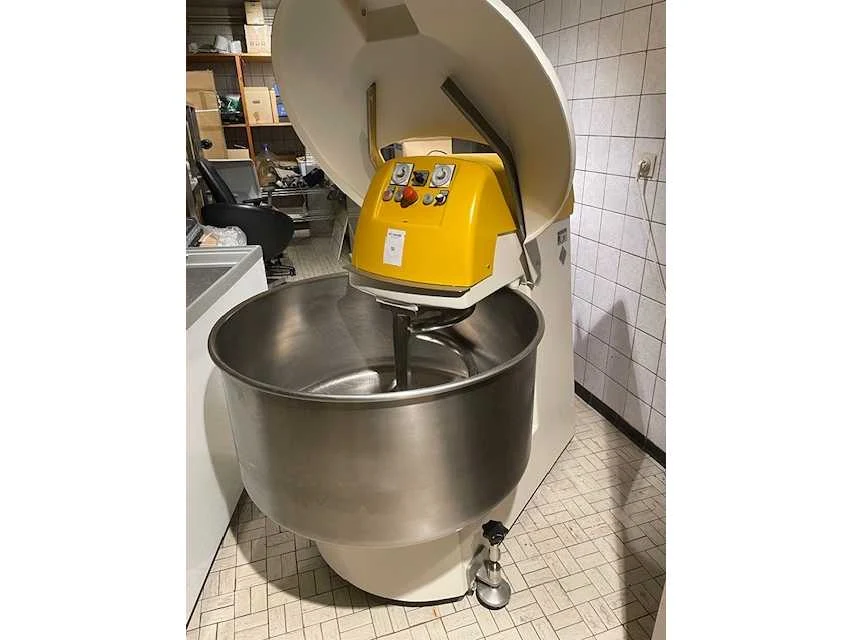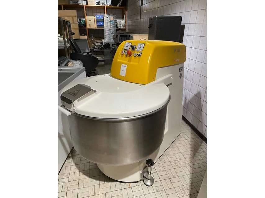 Zeer mooie deegkneder Kemper 125 liter; rvs kuip; met beschermkap; topconditie; Merk: Kemper Type: SP125 Bouwjaar: 2013 Serienummer: kem0003297 Aansluiting: 400V Eigen gewicht: 250kg Totale afmeting L: 960mm Totale afmeting Breedte: 155mm Totale afmeting Hoogte: 128mm