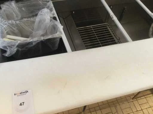 Koelwerkbank met saladette en uitschuifbaar werkblad; beursmodel; met 2 volle deuren en 1 halve deur; saladette ruimte voor 4xGN1/1 bakken; Merk: Alinox Type: TS3GN Eigen gewicht: 90kg Ingebouwde koelcompressor: true Digitale uitlezing: true Rvs: true Aansluiting: 230V Totale afmeting L: 140cm Totale afmeting Breedte: 80cm Totale afmeting Hoogte: 85cm