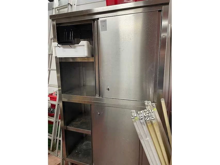 Muurkast met schuifdeuren; zonder inhoud; Lengte: 120cm Breedte: 60cm Hoogte: 200cm Materiaal: rvs