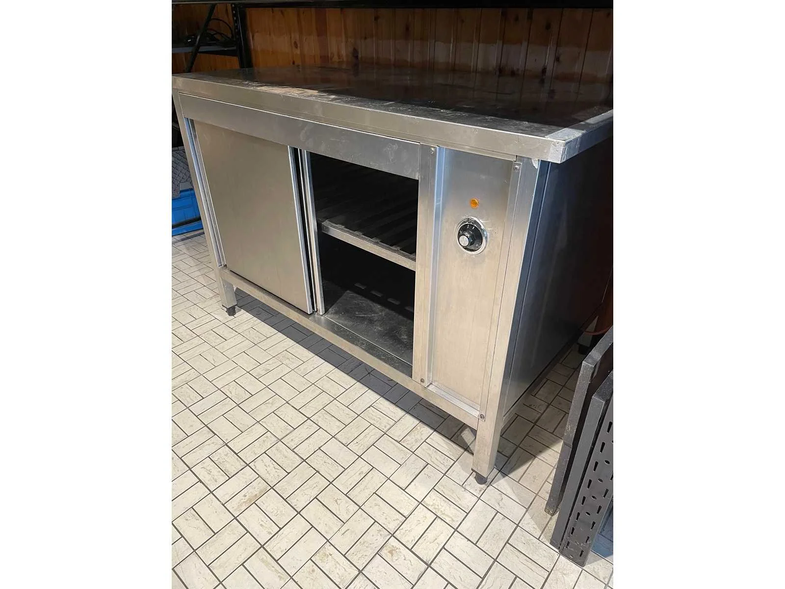 Warmkast met schuifdeuren; rvs bovenblad kan eraf; Aansluiting: 230V Rvs: true Vrijstaand: true Regelbare thermostaat: true Totale afmeting L: 120cm Totale afmeting Breedte: 70cm Totale afmeting Hoogte: 83cm