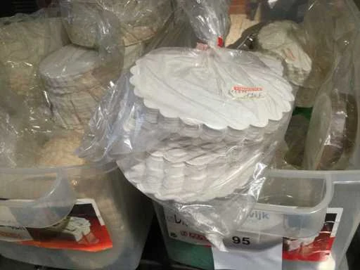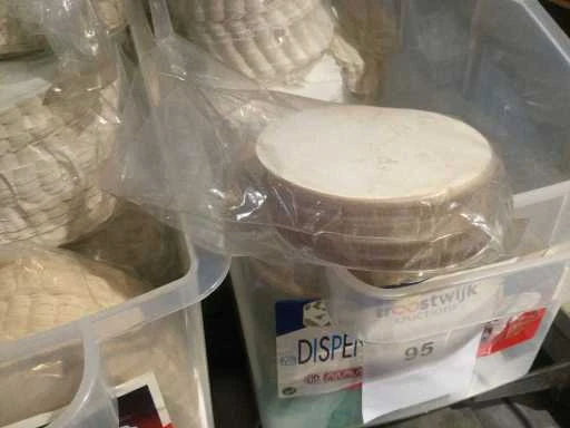 Grote partij hamburgerpapiertjes en -folies; in 2 bakken;