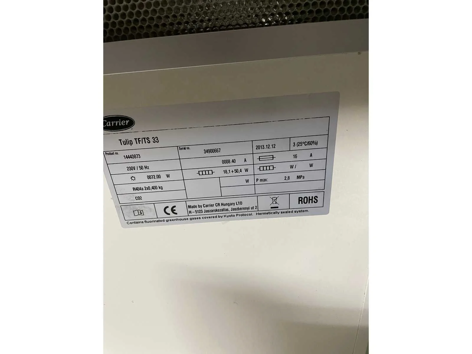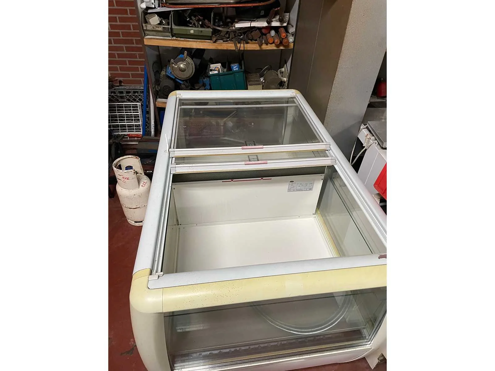 Impulsvriezer met 2 glazen schuifdeuren; Kan ook als koeling gebruikt worden; Merk: Carrier Eigen gewicht: 120kg Totale afmeting L: 1450mm Totale afmeting Breedte: 900mm Totale afmeting Hoogte: 920mm