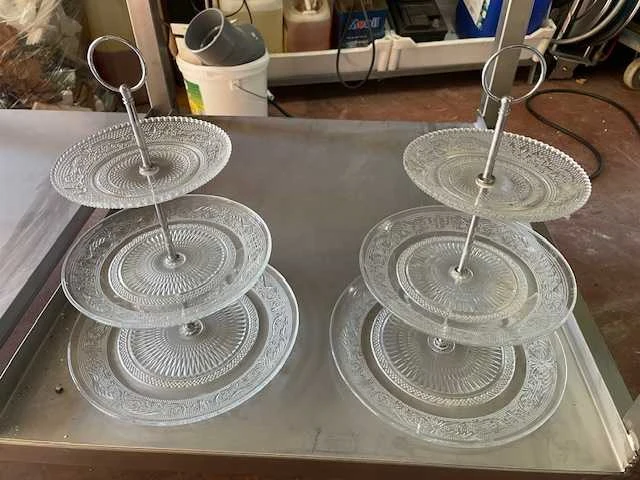 Presenteerschalen glas en lei; ijsemmer; champagnekoelers; latte glazen, melkflesjes; buffetkoelingen;