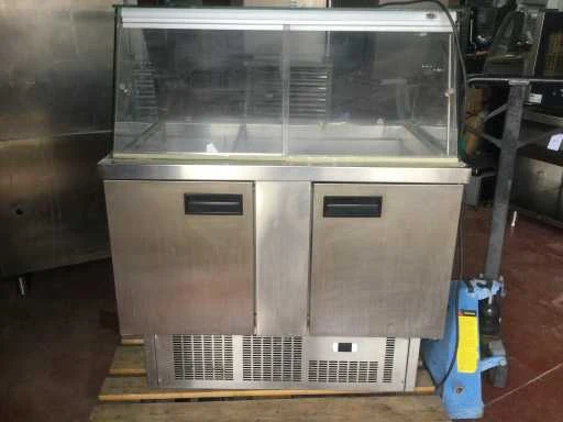 Dubbeldeur saladette; met glazen opstand; 2 x GN1/1; Ingebouwde koelcompressor: true Digitale uitlezing: true Rvs: true Aansluiting: 230V Totale afmeting L: 107cm Totale afmeting Breedte: 70cm Totale afmeting Hoogte: 128cm