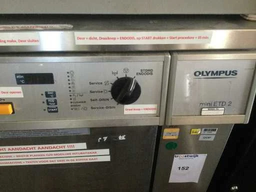Reprocessor voor endoscopen; Miele-Olympus; 230V 3,3kw; 400V 6,3KW; Merk: Olympus Gewicht: 80kg Type: Mini ETD2 Aansluiting: 400V Totale afmeting L: 600mm Totale afmeting Breedte: 650mm Totale afmeting Hoogte: 650mm