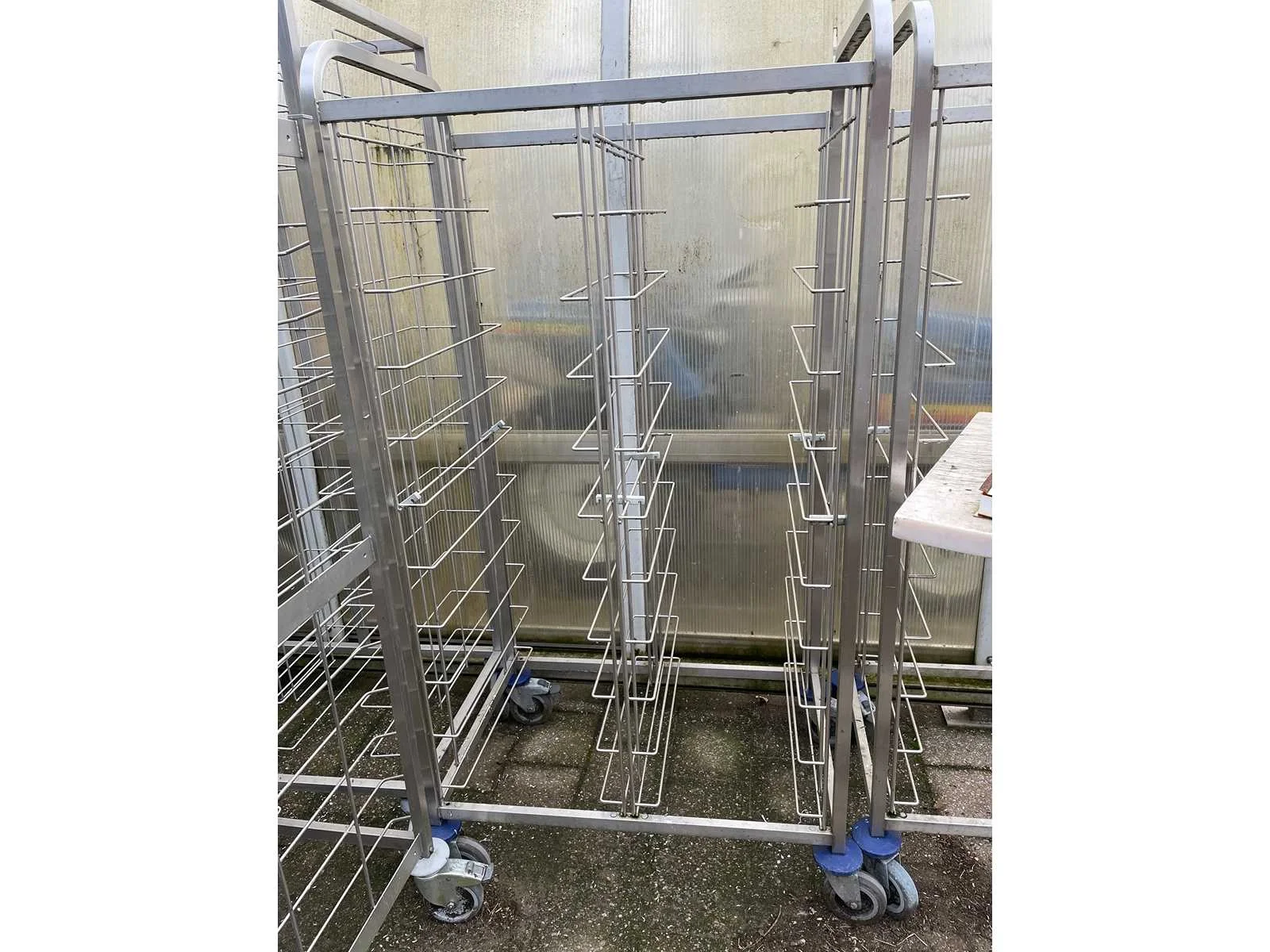 Regaalwagen voor 2 x 10 verdiepen voor GN1/1 bakken of plateaus; Lengte: 90 Breedte: 60 Hoogte: 168 Materiaal: rvs