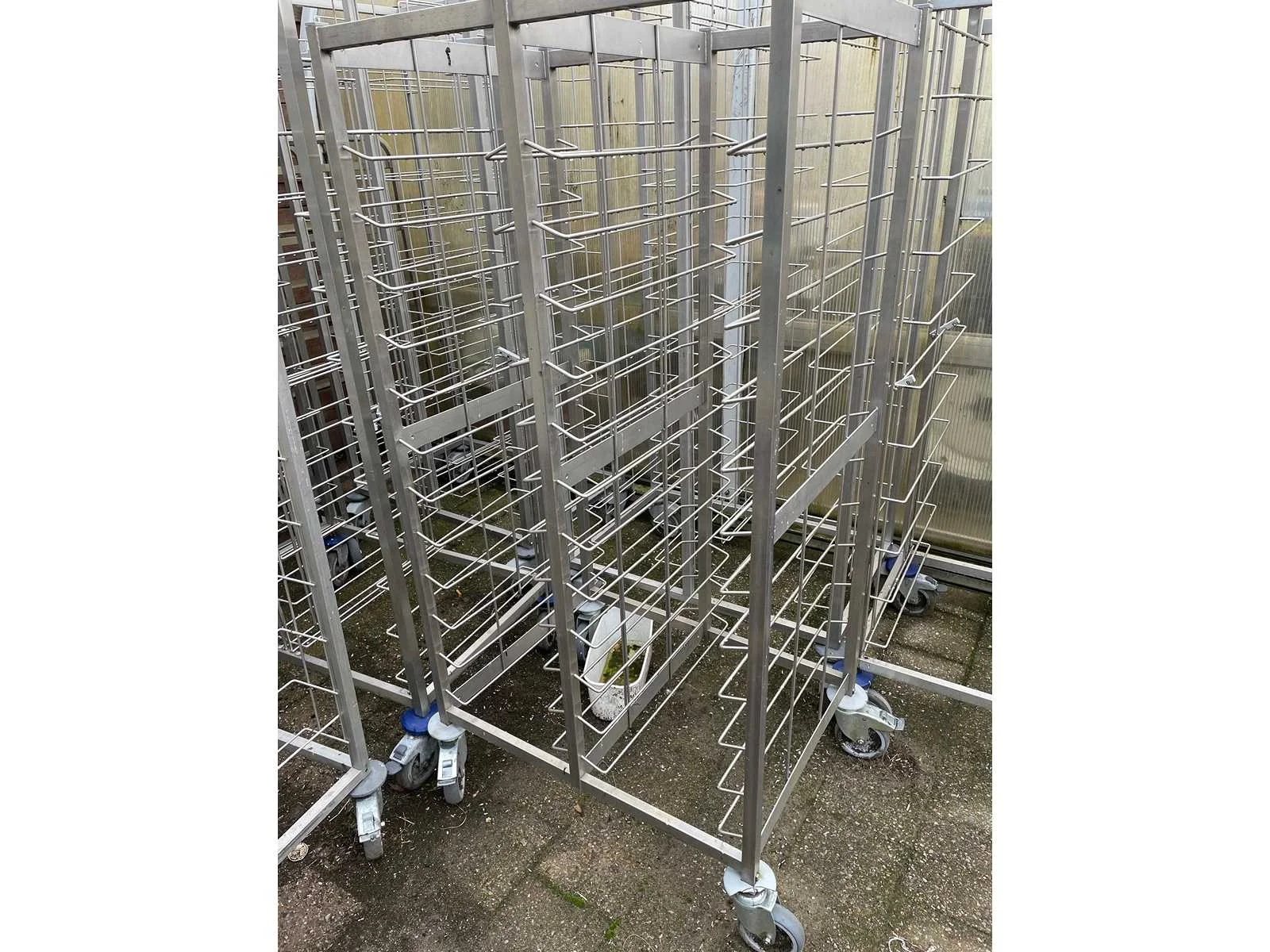 Regaalwagen voor 2 x 12 verdiepen voor GN1/1 bakken of plateaus; Lengte: 92 Breedte: 69 Hoogte: 182 Materiaal: rvs