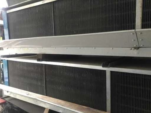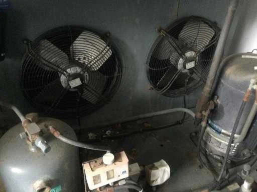 Installatie voor grote koelcel groenten en fruit, bestaande uit : 2 verdampers en 2 koelgroepen; 400V; 1 verdamper 295x75x50cm; 1 verdamper 345x75x50cm; Merk: Copeland Koelcompressor: true Verdamper: true