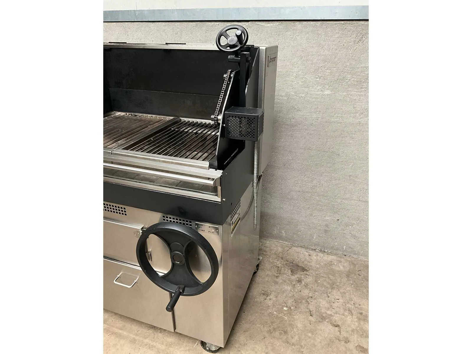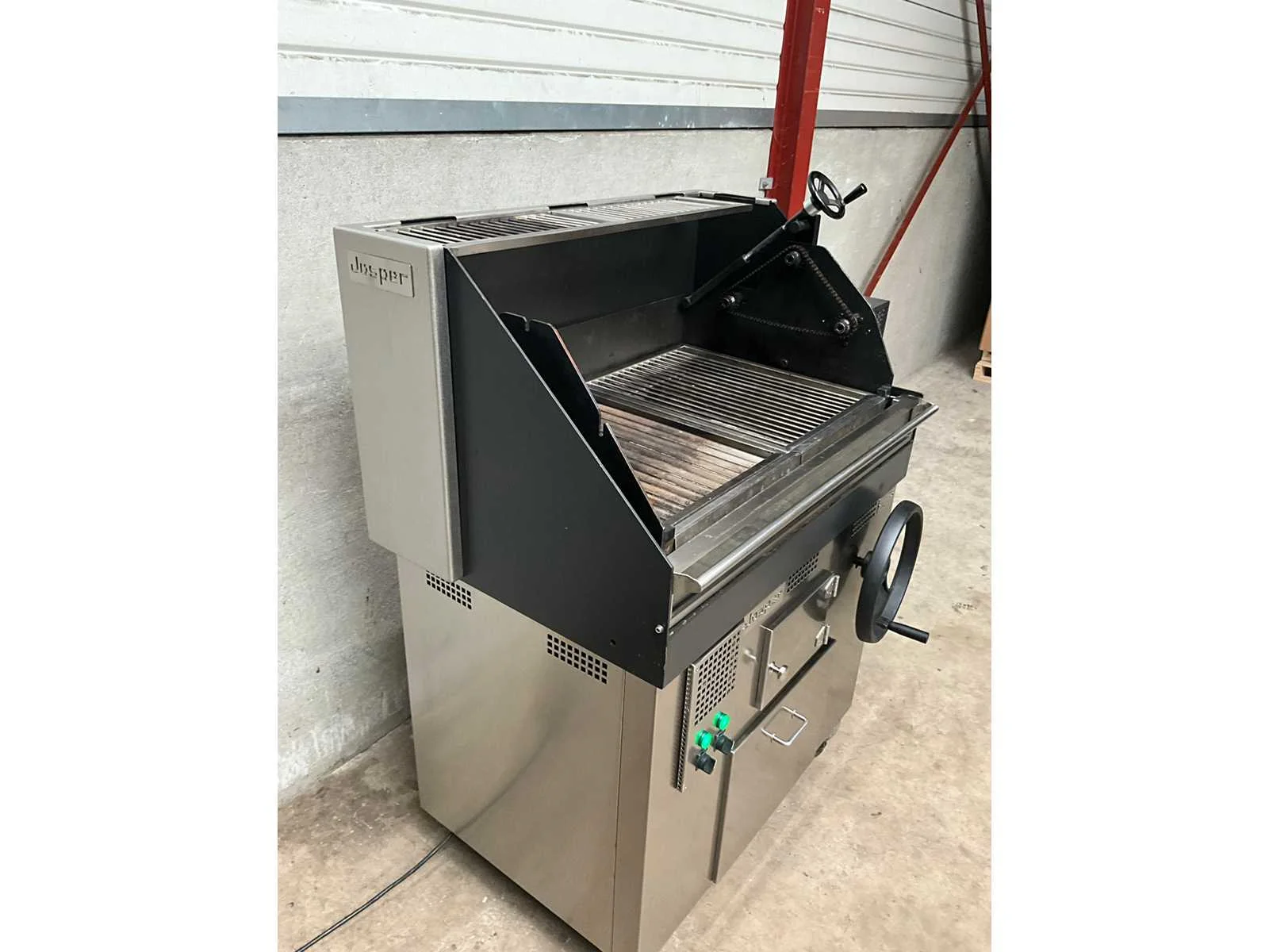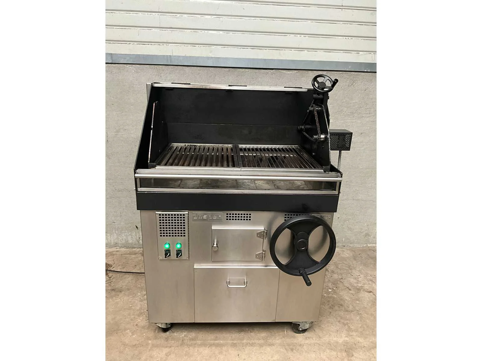 Verrijdbare houtskoolgrill, uitermate geschikt voor het bereiden van vlees op zeer hoge temperaturen waardoor het vlees snel dichtschroeit waardoor de authentieke smaak behouden blijft, grilltemperatuur 350-400 graden, voorzien van aslade Merk: Josper Type: BC1-EM Lengte: 121cm Breedte: 81cm Hoogte: 157cm