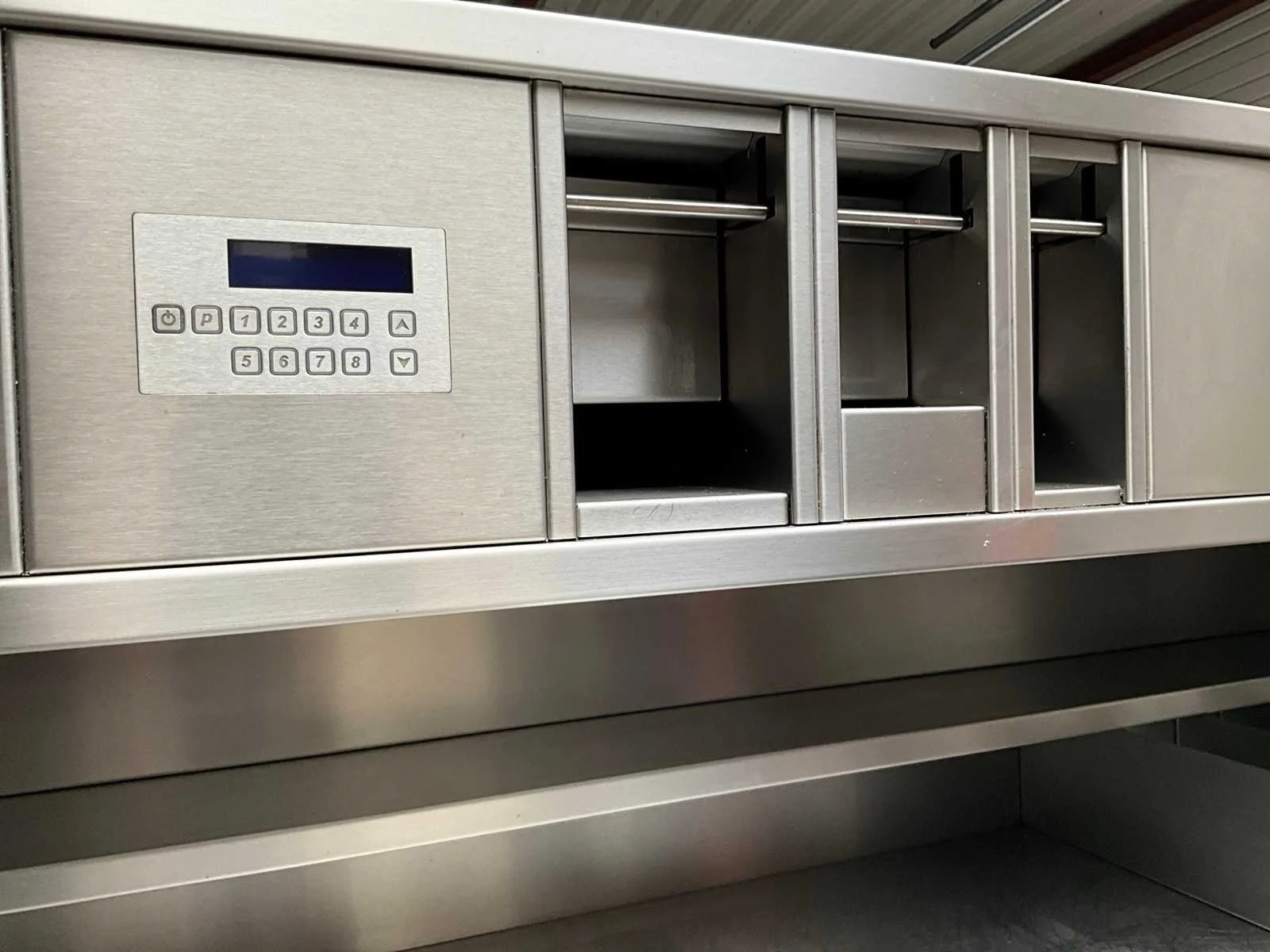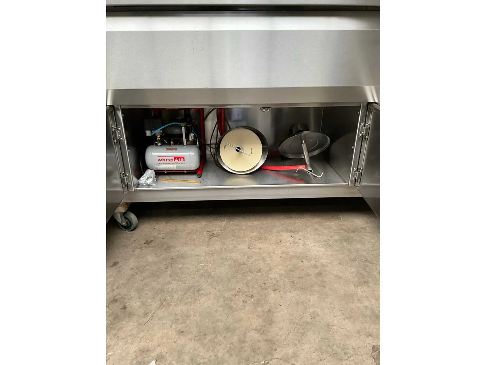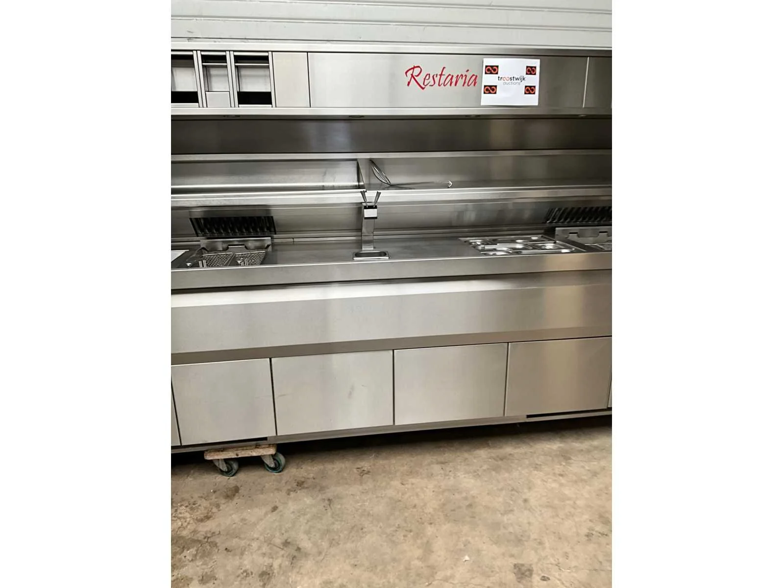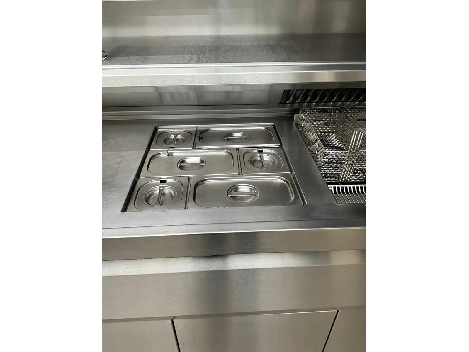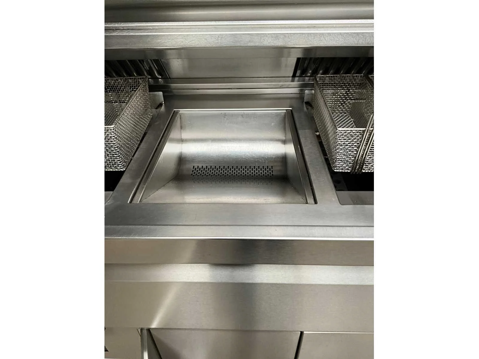 Hoogrendement frituur bakwand, 2 frituurzones met 2 manden, 1 frituurzone met 3 manden, patat schepbak, dubbele sauspomp, bain marie met diverse gn bakken, spiegelbakplaat, ingbouwde vetafvoerpomp Merk: Kiremko Aantal zones: 3 Elektrisch: true Gas: true