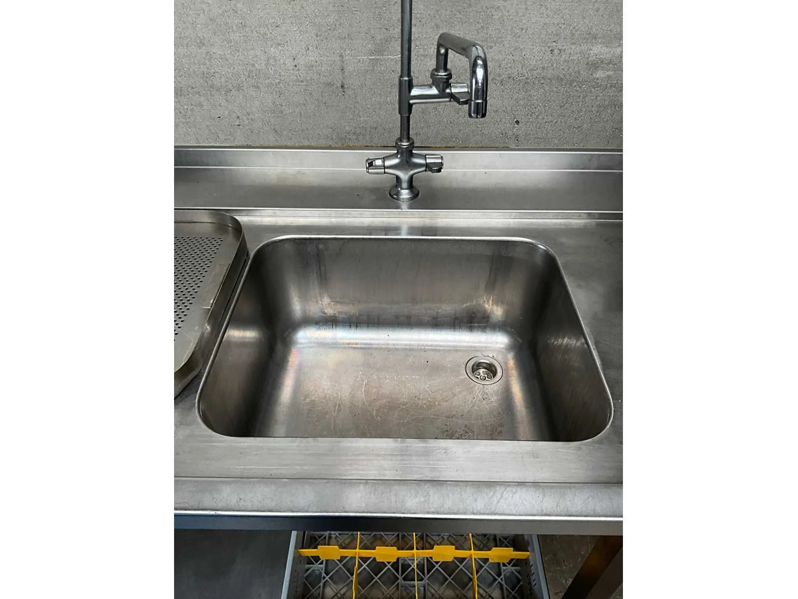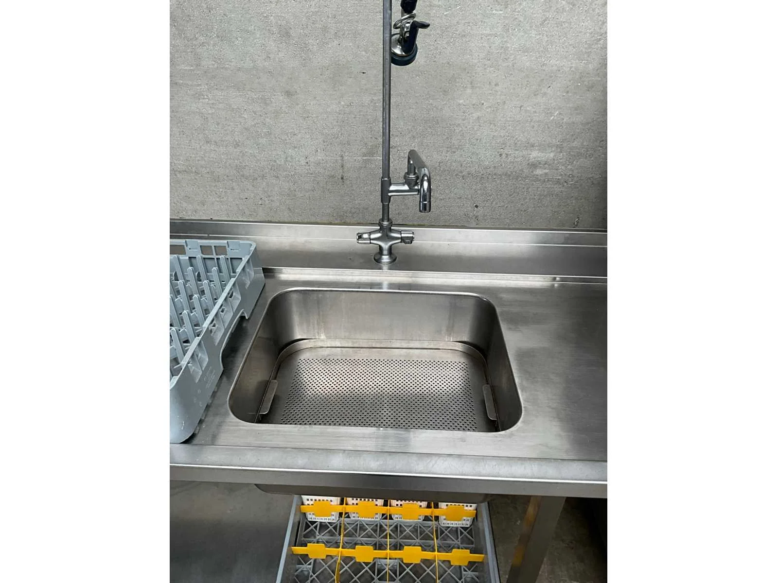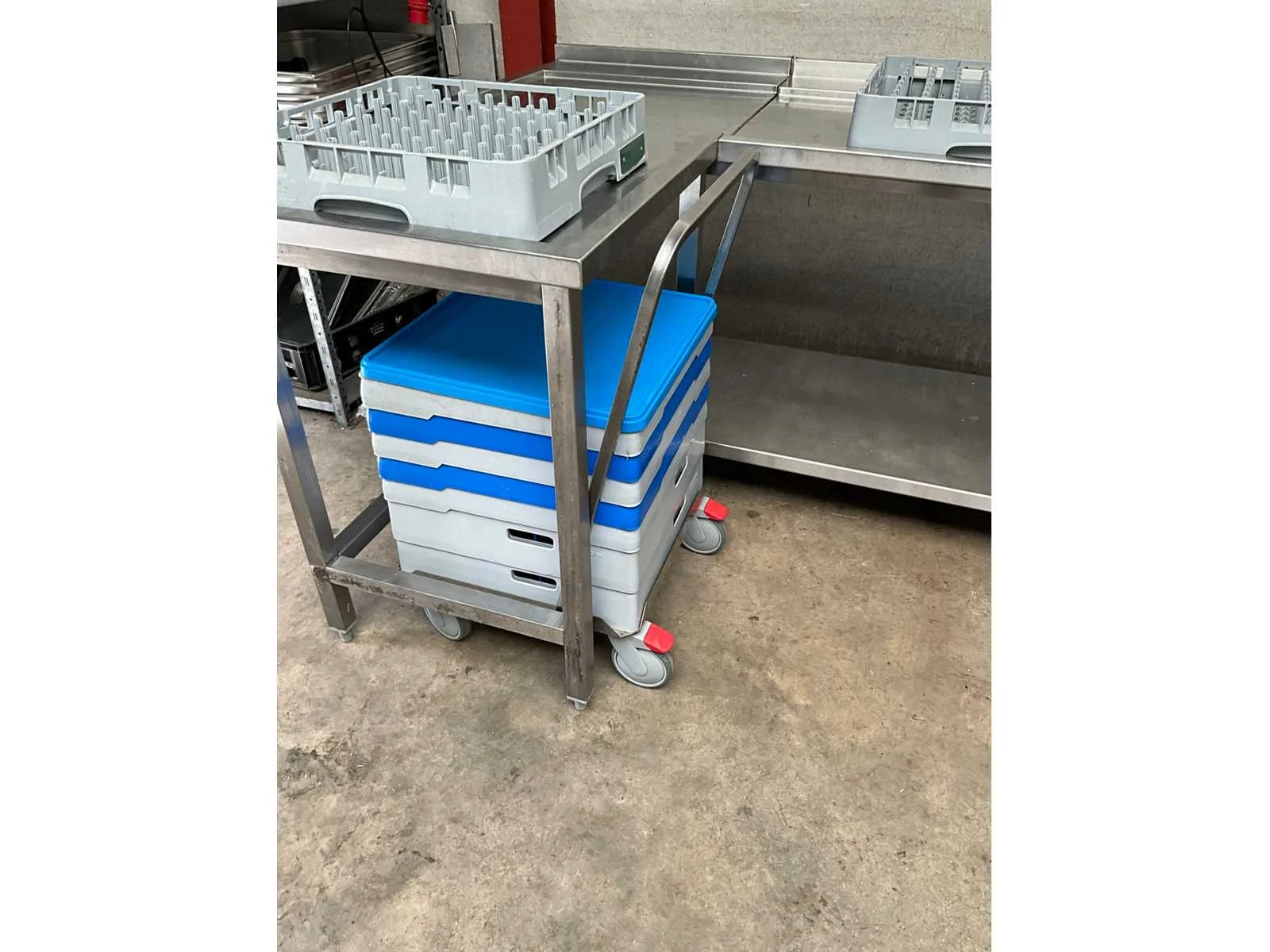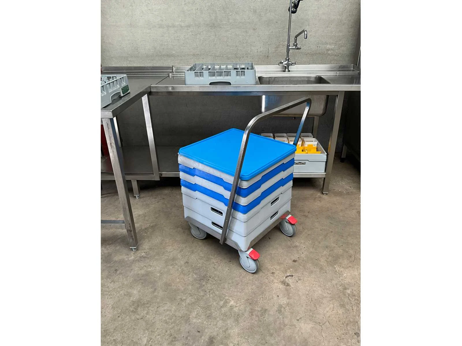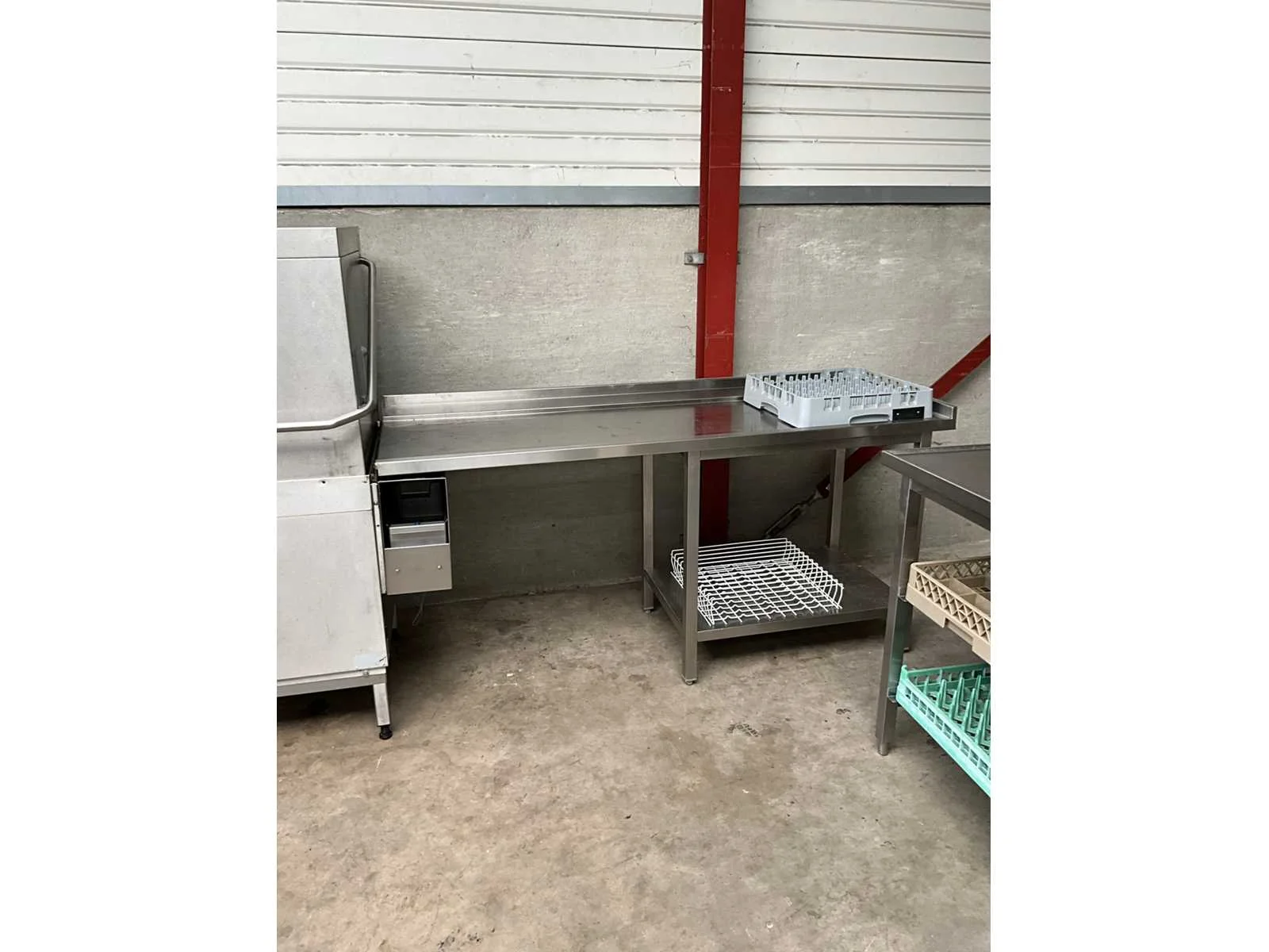 Rvs korvenvaatwasstraat, voorzien van aan en afvoertafel, spoelbak, spoelkraan, debrasseer tafel, diverse vaatwaskorven en transportkar voor korven, kan ook in hoekopstelling geplaatst worden Merk: Hobart Type: Premax Rvs: true Doorschuifmodel: true Aansluiting: 400V Korf afmeting l: 50cm Korf afmeting b: 50cm Totale afmeting Breedte: 1400mm Totale afmeting Hoogte: 1530mm Lengte: 4800