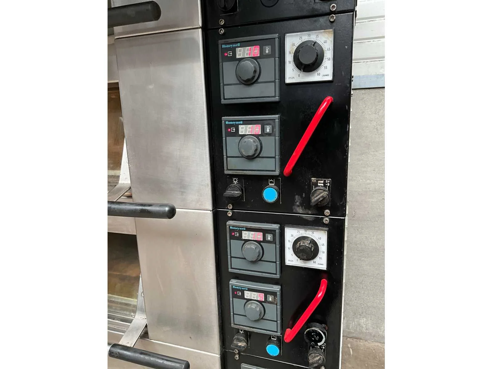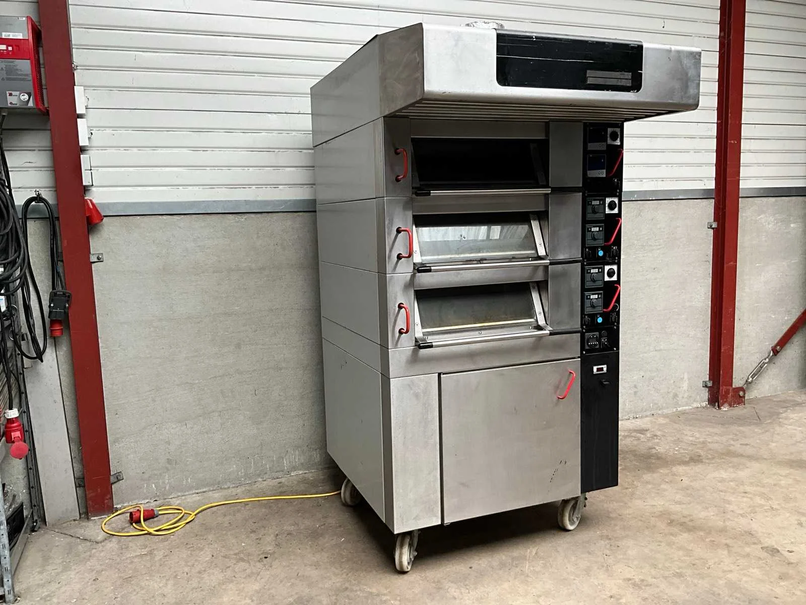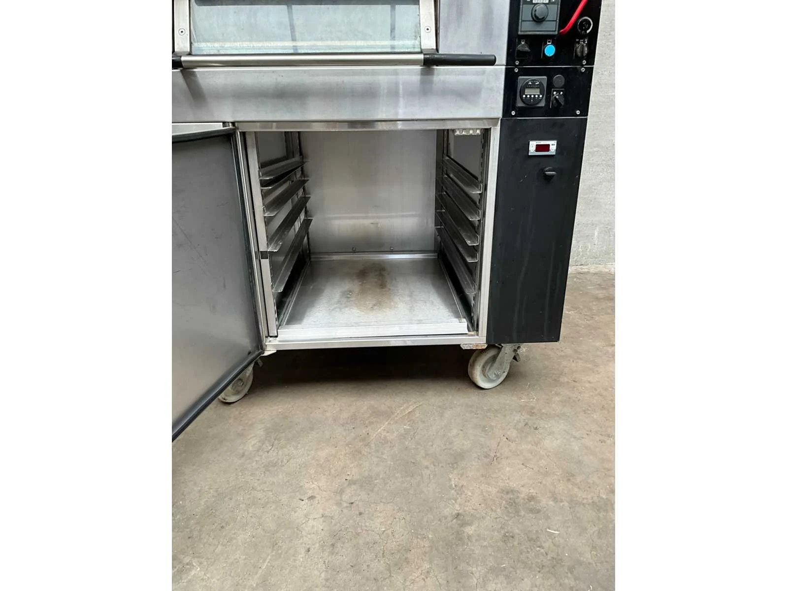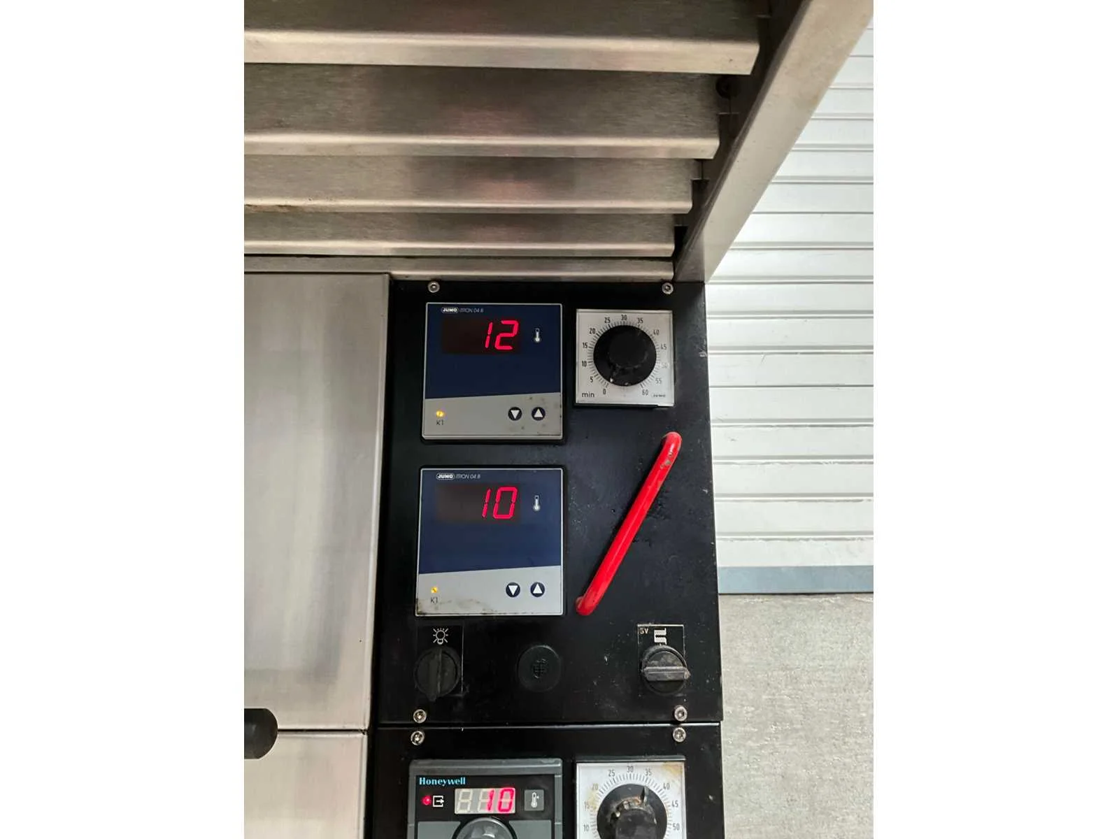 Verrijdbare rvs dekoven voorzien van afzuigkap, lamp onderste oven moet vervangen worden Invoerruimte bxdxh62x83x14 cm. Merk: Bongard Aansluiting: 400V Elektrisch: true Rvs: true Totale afmeting L: 115cm Totale afmeting Breedte: 148cm Totale afmeting Hoogte: 222cm