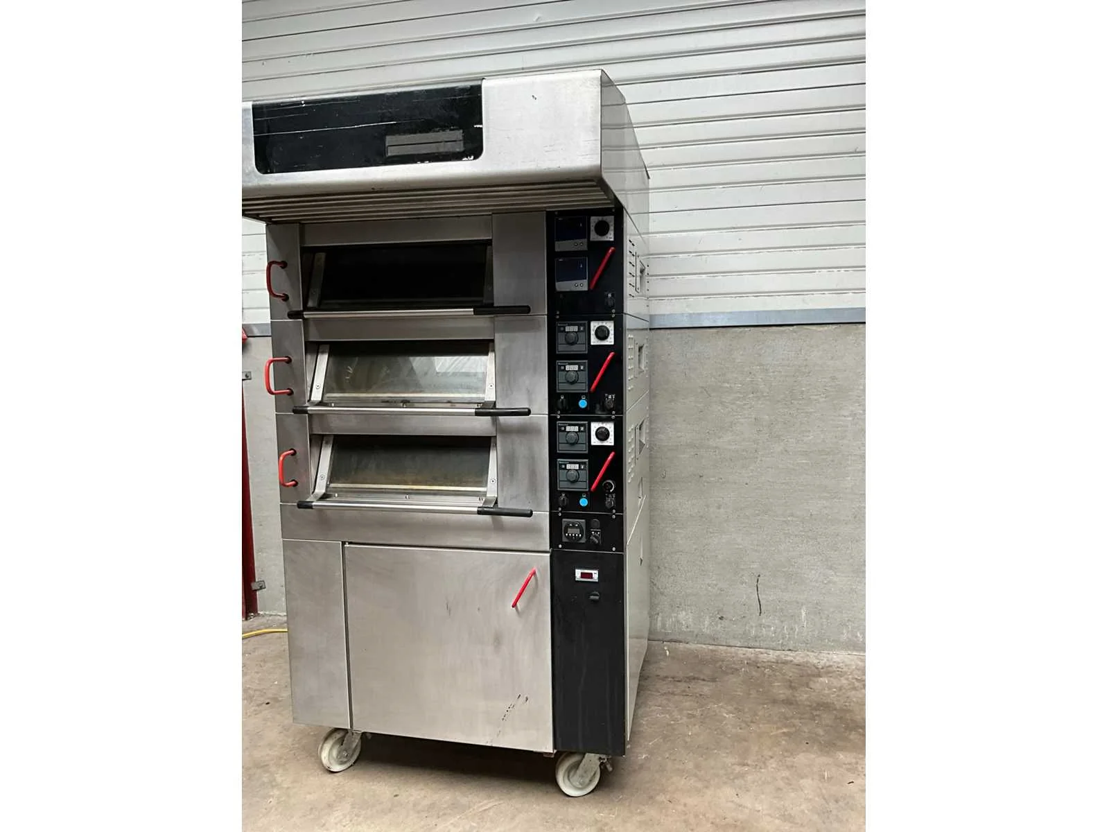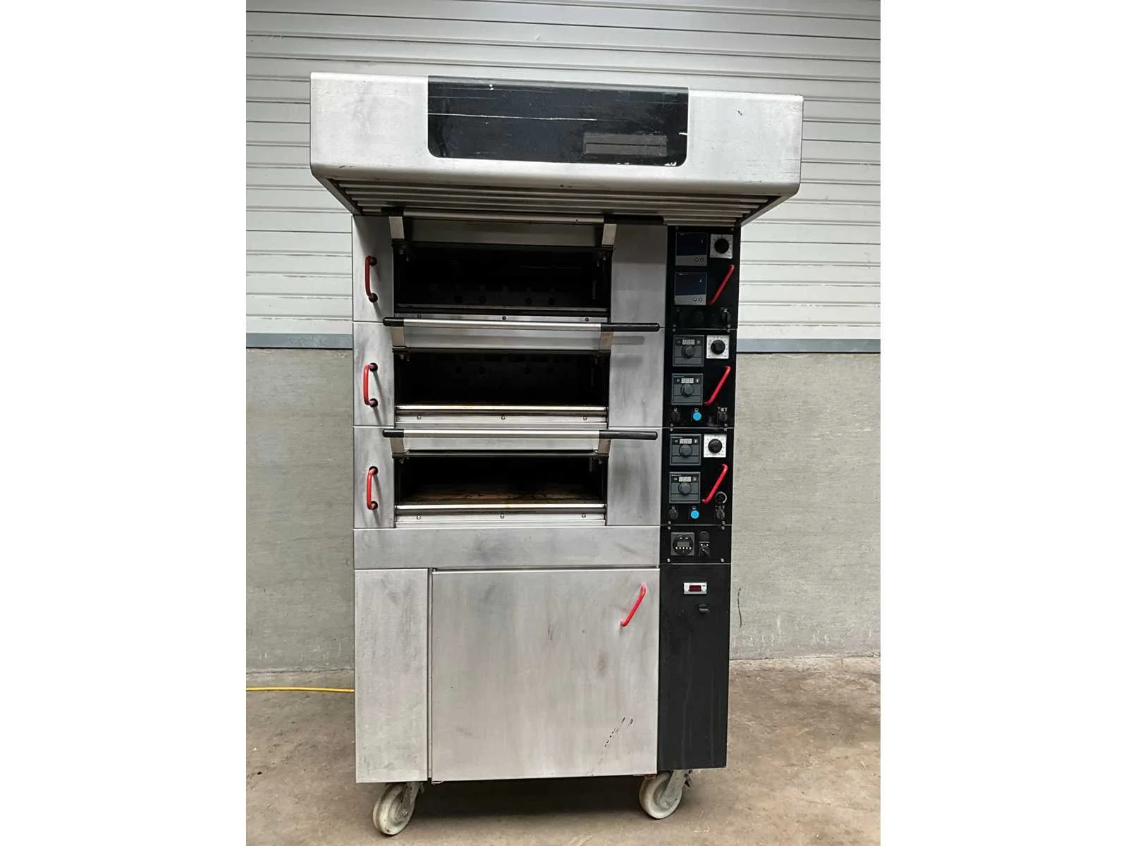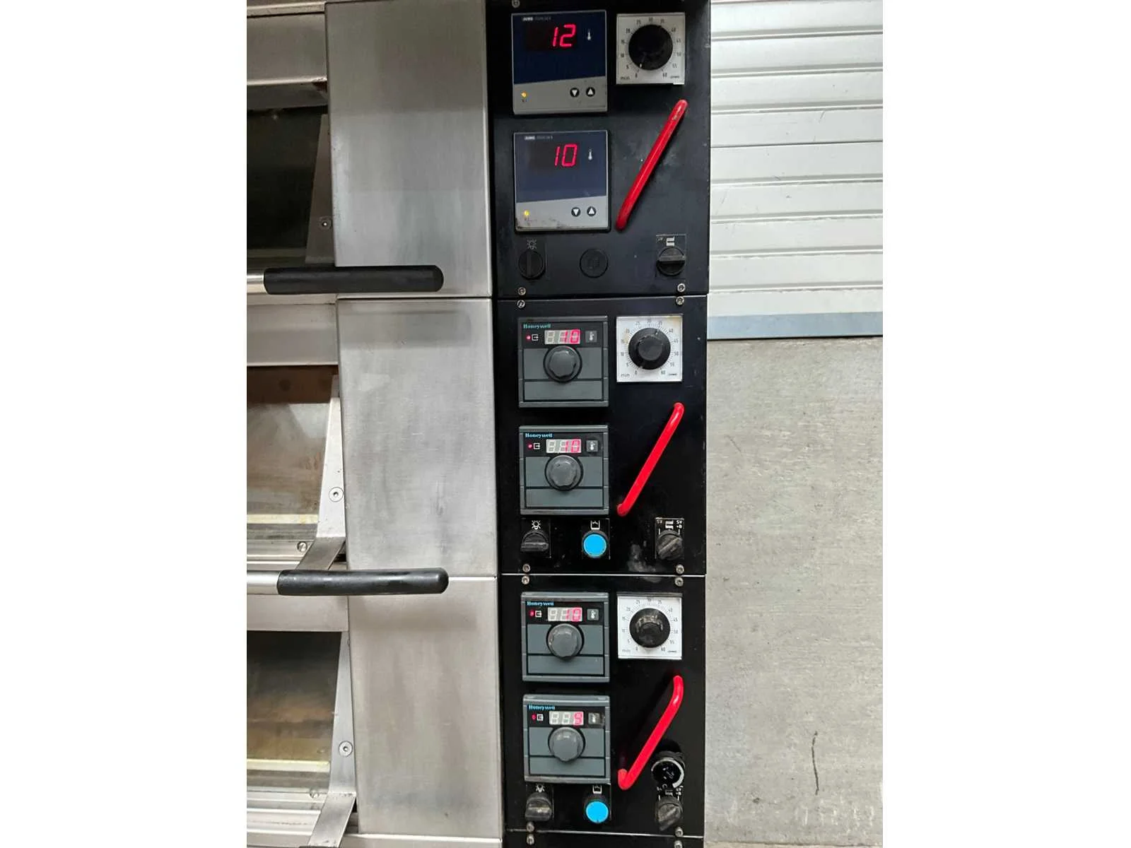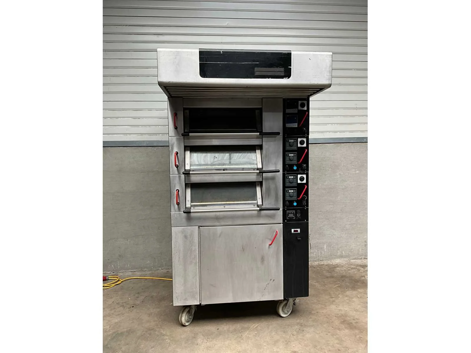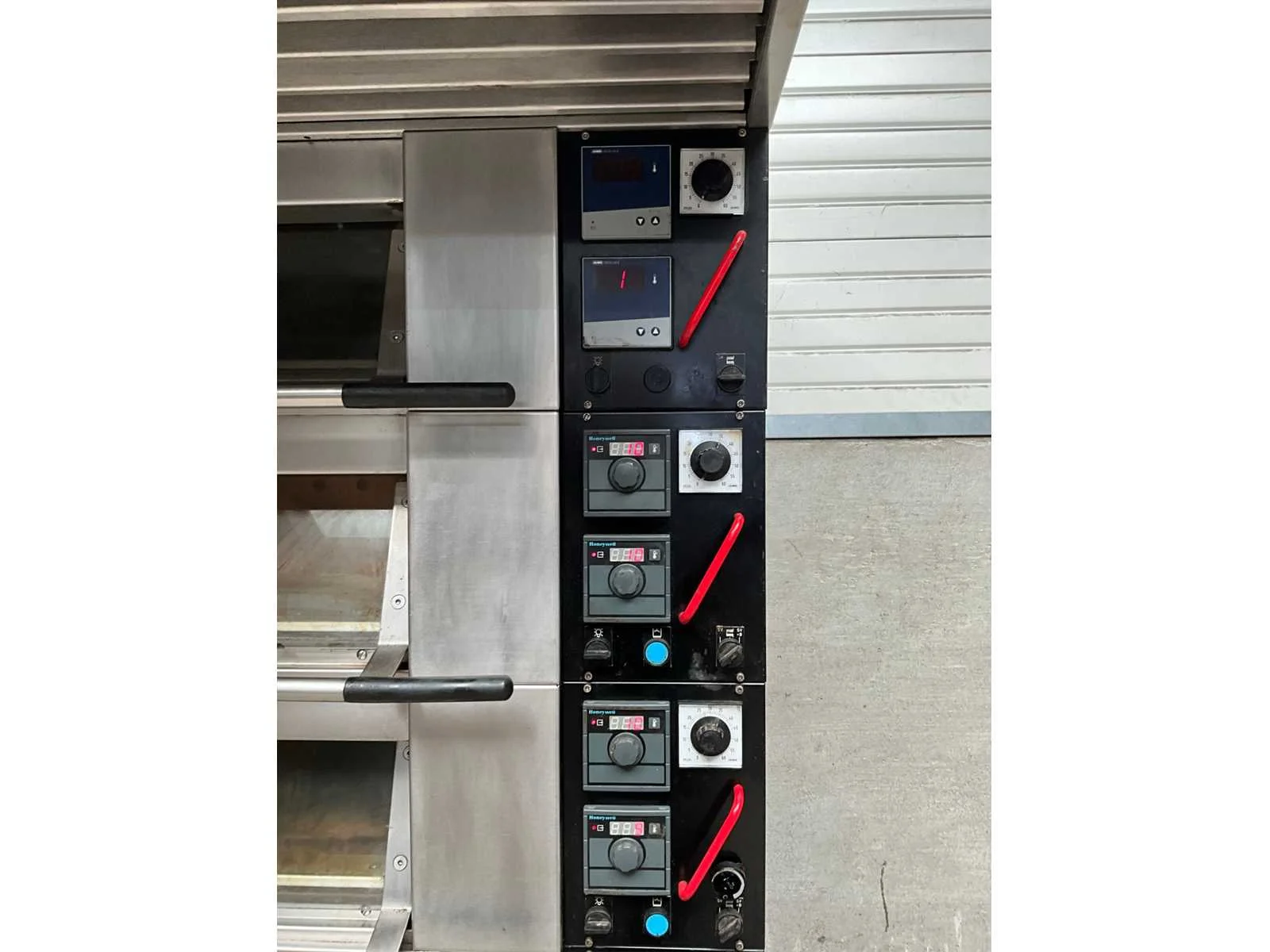 Verrijdbare rvs dekoven voorzien van afzuigkap, lamp onderste oven moet vervangen worden Invoerruimte bxdxh62x83x14 cm. Merk: Bongard Aansluiting: 400V Elektrisch: true Rvs: true Totale afmeting L: 115cm Totale afmeting Breedte: 148cm Totale afmeting Hoogte: 222cm