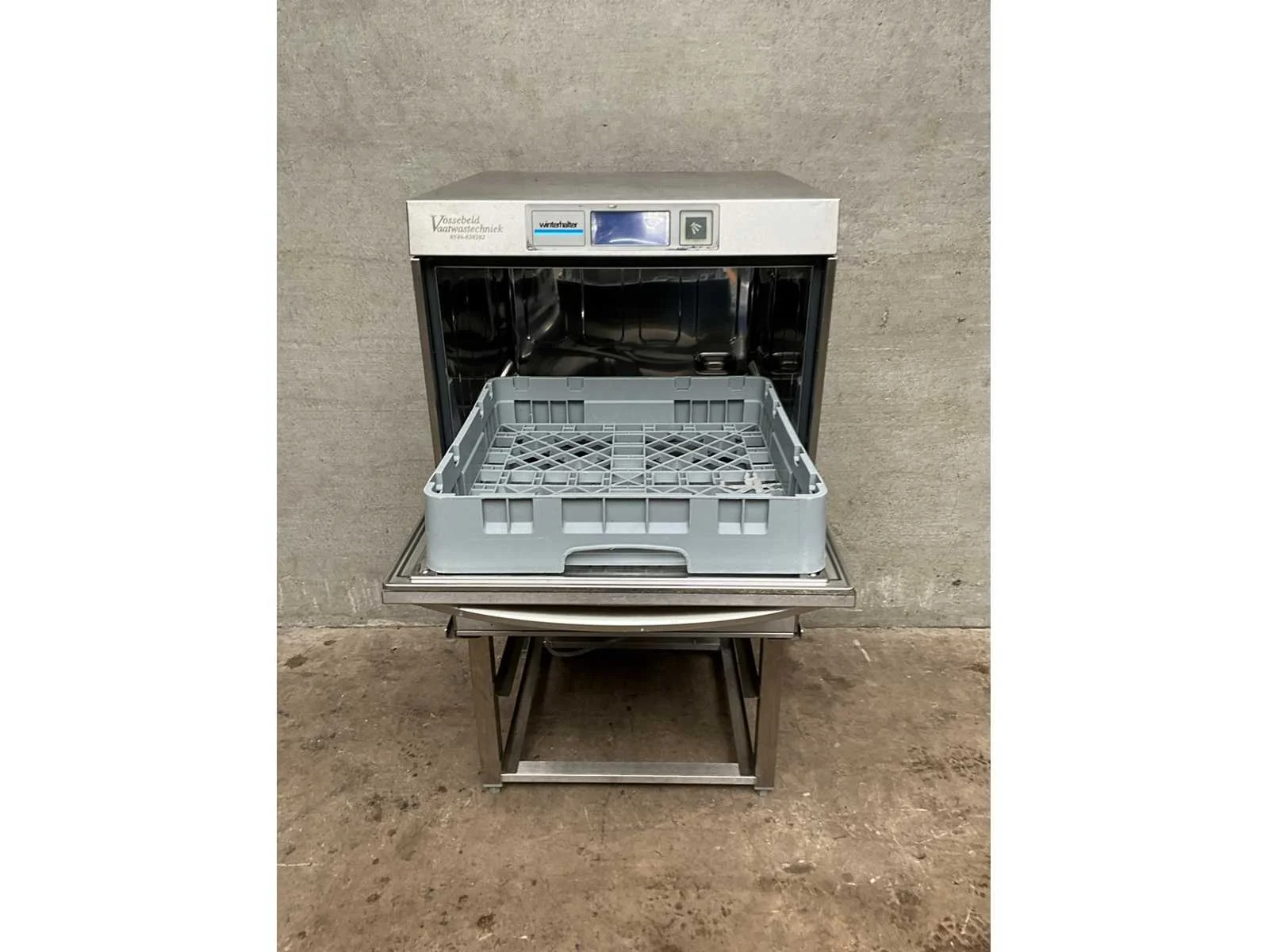 Winterhalter voorlader vaatwasser voorzien van 1 korf, op onderstel Merk: Winterhalter Type: UC-M Rvs: true Voorlader: true Aansluiting: 230V Korf afmeting l: 50cm Korf afmeting b: 50cm Totale afmeting L: 600mm Totale afmeting Breedte: 65mm