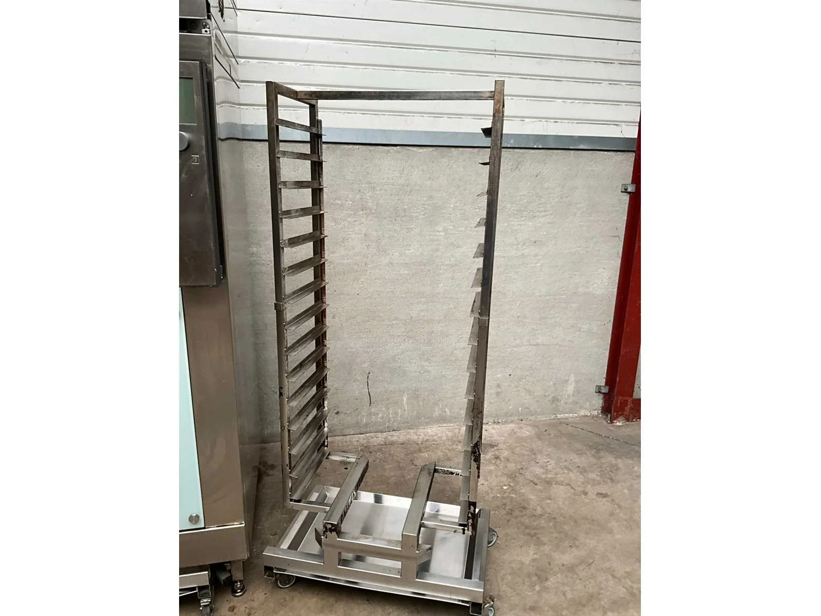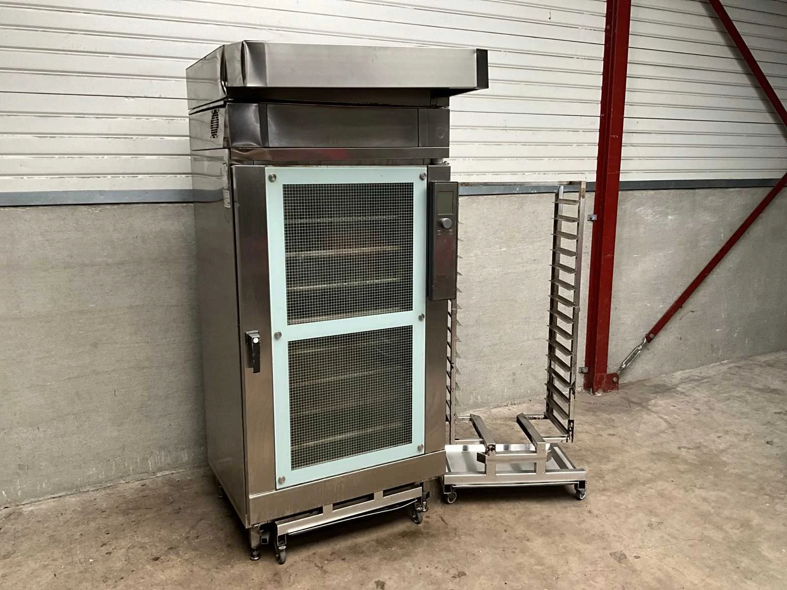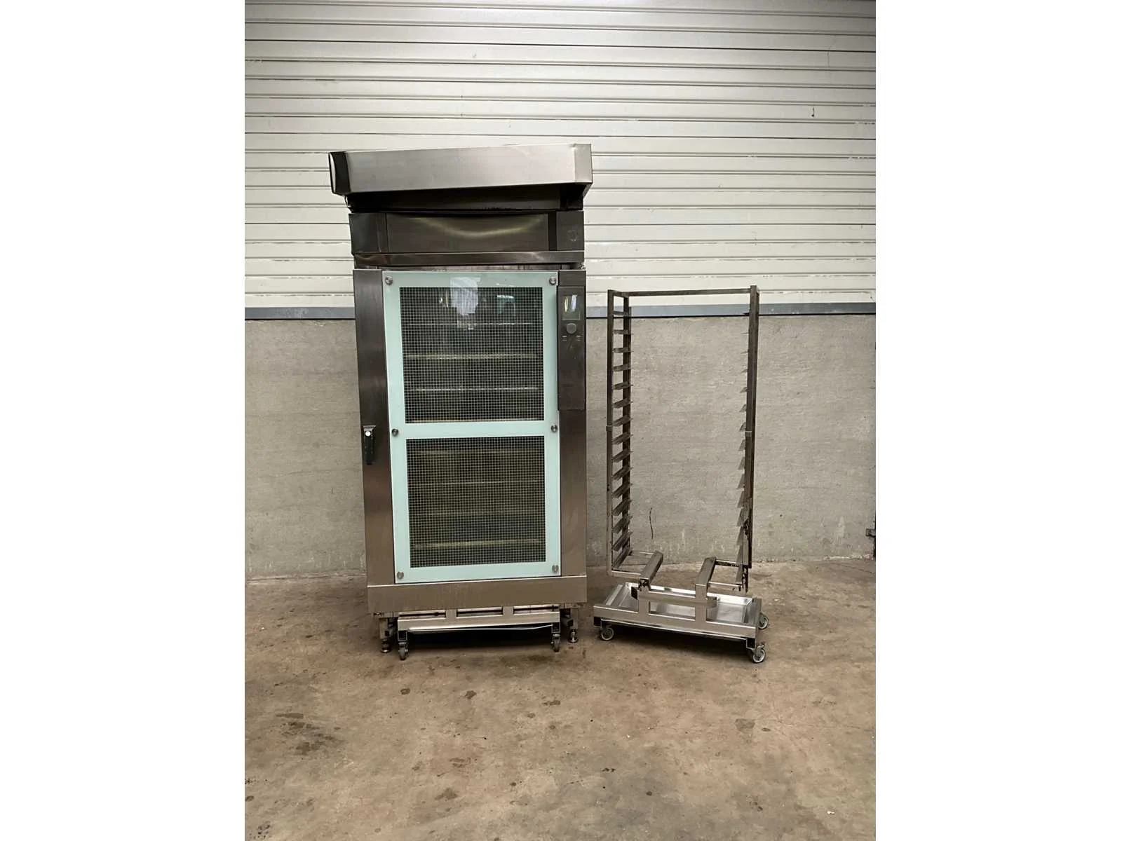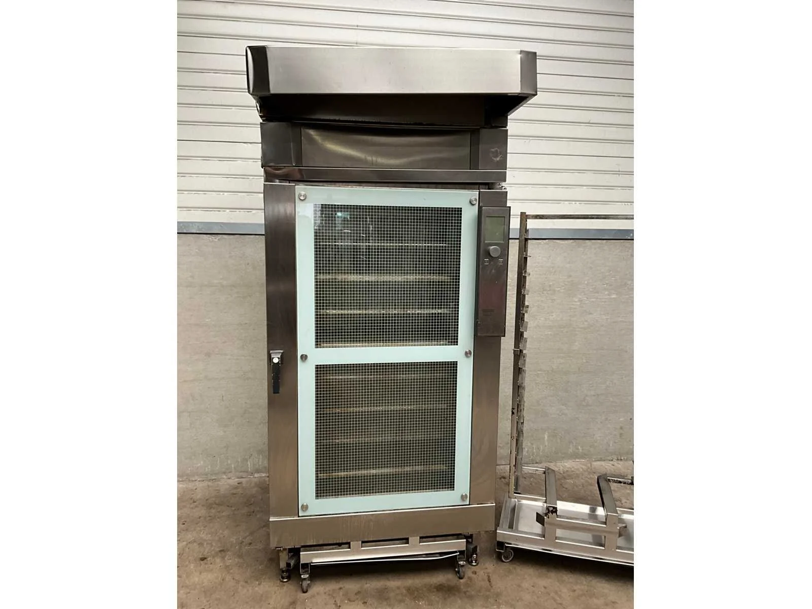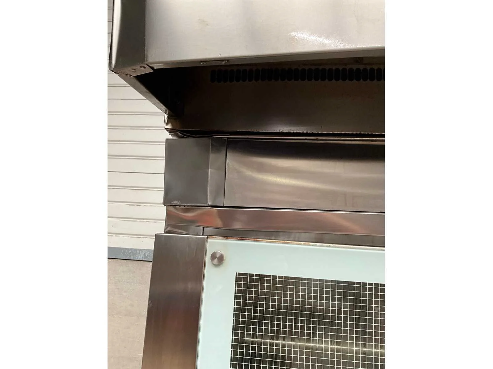 Rvs heteluchtoven inclusief 2 inrijkarren, display niet scherp, transportschade bovenzijde Merk: Wiesheu Type: B15 EM Totale afmeting L: 100cm Totale afmeting Breedte: 113cm Totale afmeting Hoogte: 224cm
