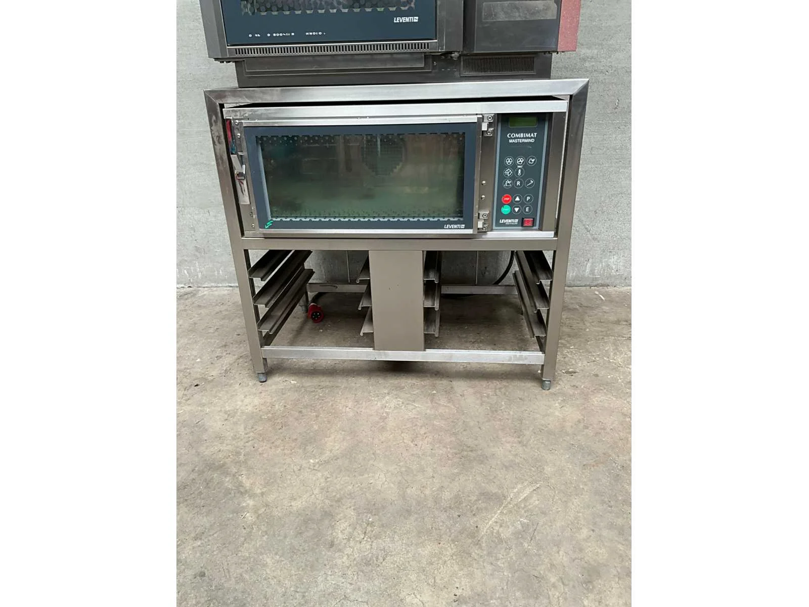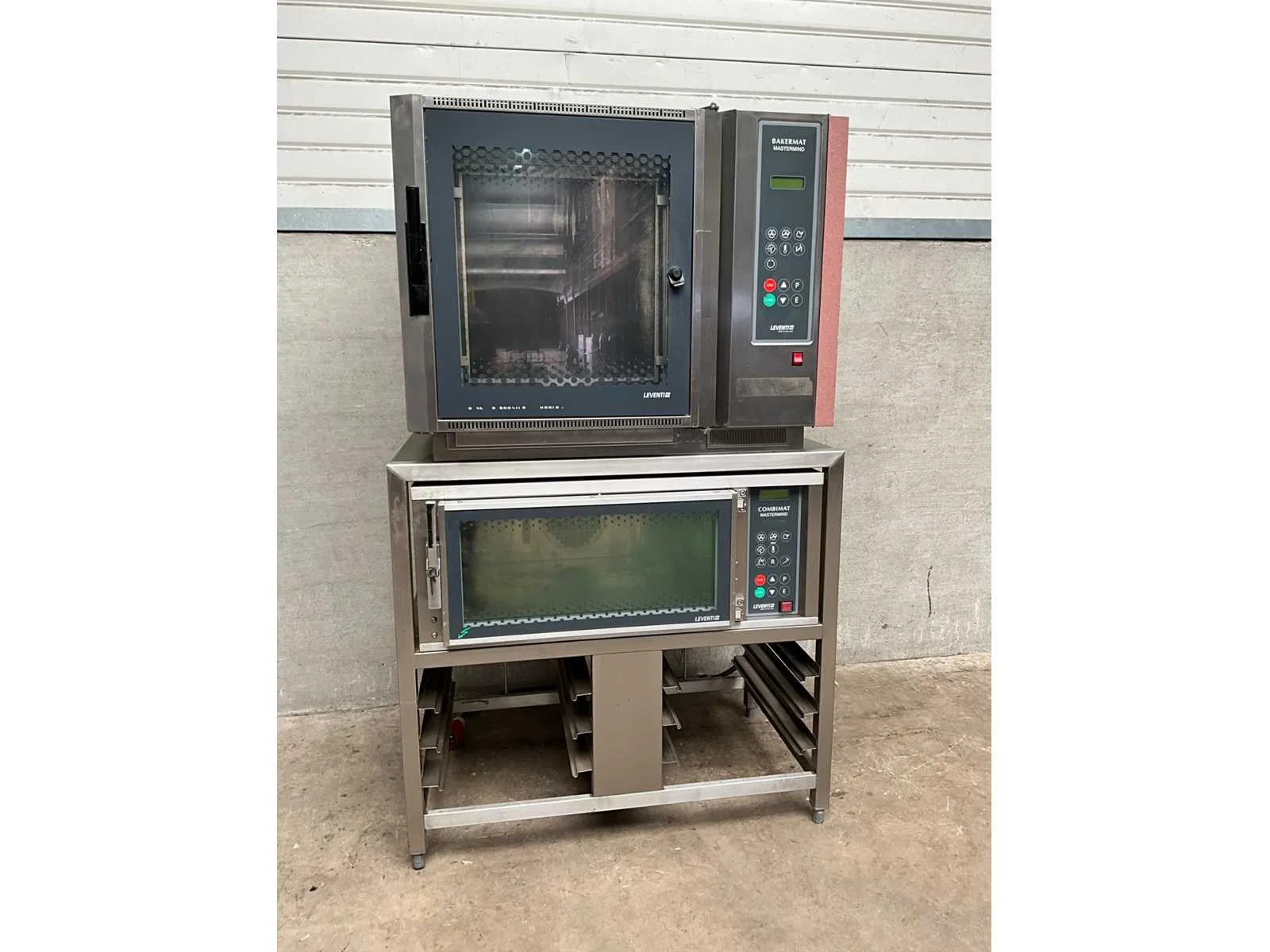 1 x Bakermat ABT MK3.1 MM DI 6pl met 400 volt aansluiting 1x Combimat MK 3 MM DI 2 pl met 230 volt aansluiting Op rvs onderstel met 6 regalen Merk: Leventi Type: BM en CM Elektrisch: true Rvs: true Totale afmeting L: 107cm Totale afmeting Breedte: 86cm Totale afmeting Hoogte: 176cm