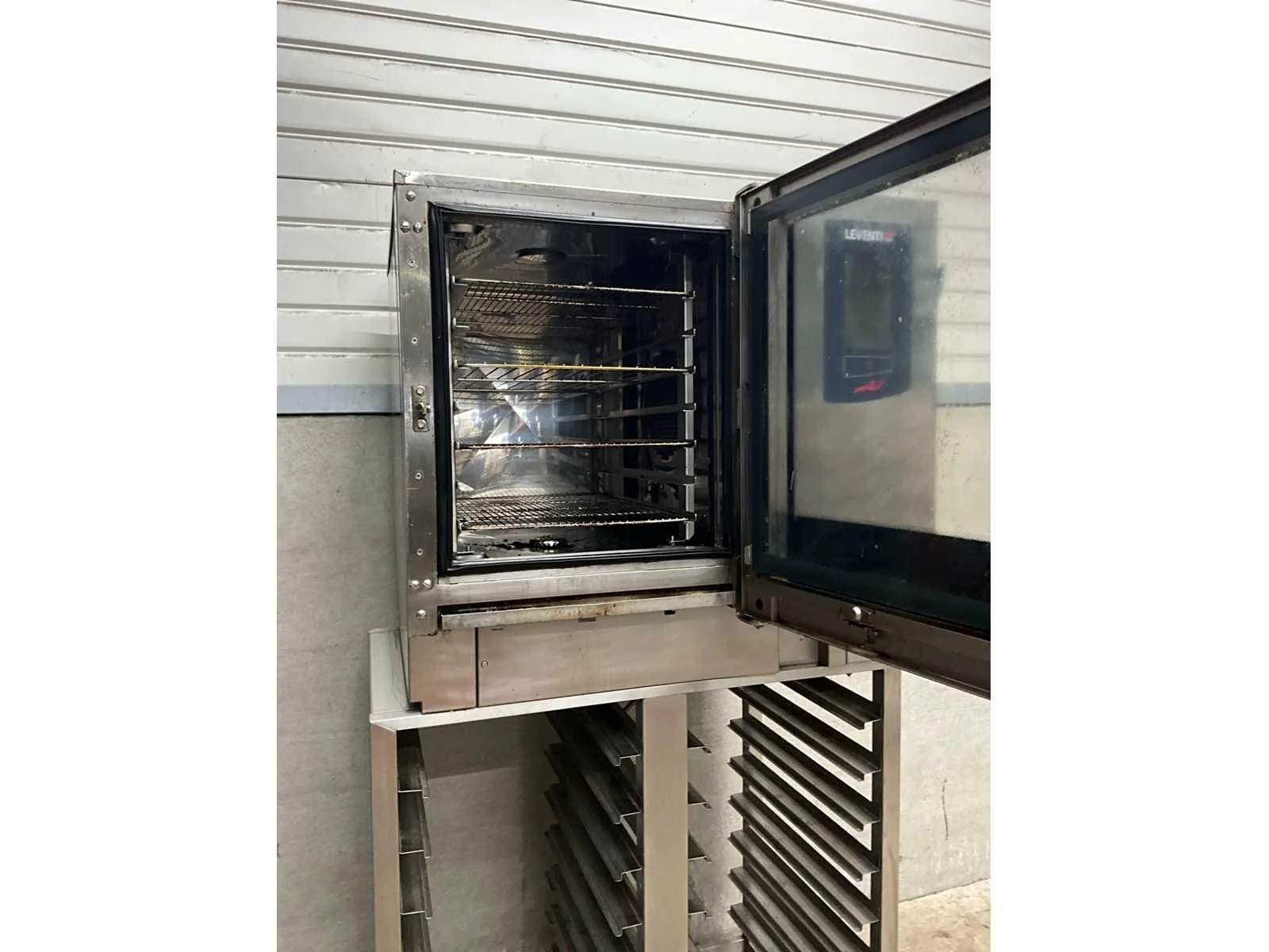 Rvs oven met 7 regalen op onderstel met 16 regalen Merk: Leventi Type: ME Aansluiting: 400V Touchscreen bediening: true Digitale besturing: true Elektrisch: true Rvs: true Totale afmeting L: 98cm Totale afmeting Breedte: 93cm Totale afmeting Hoogte: 191cm