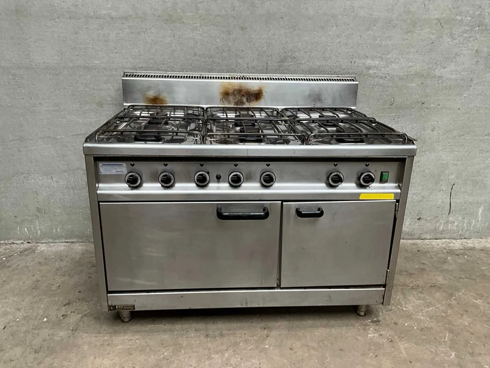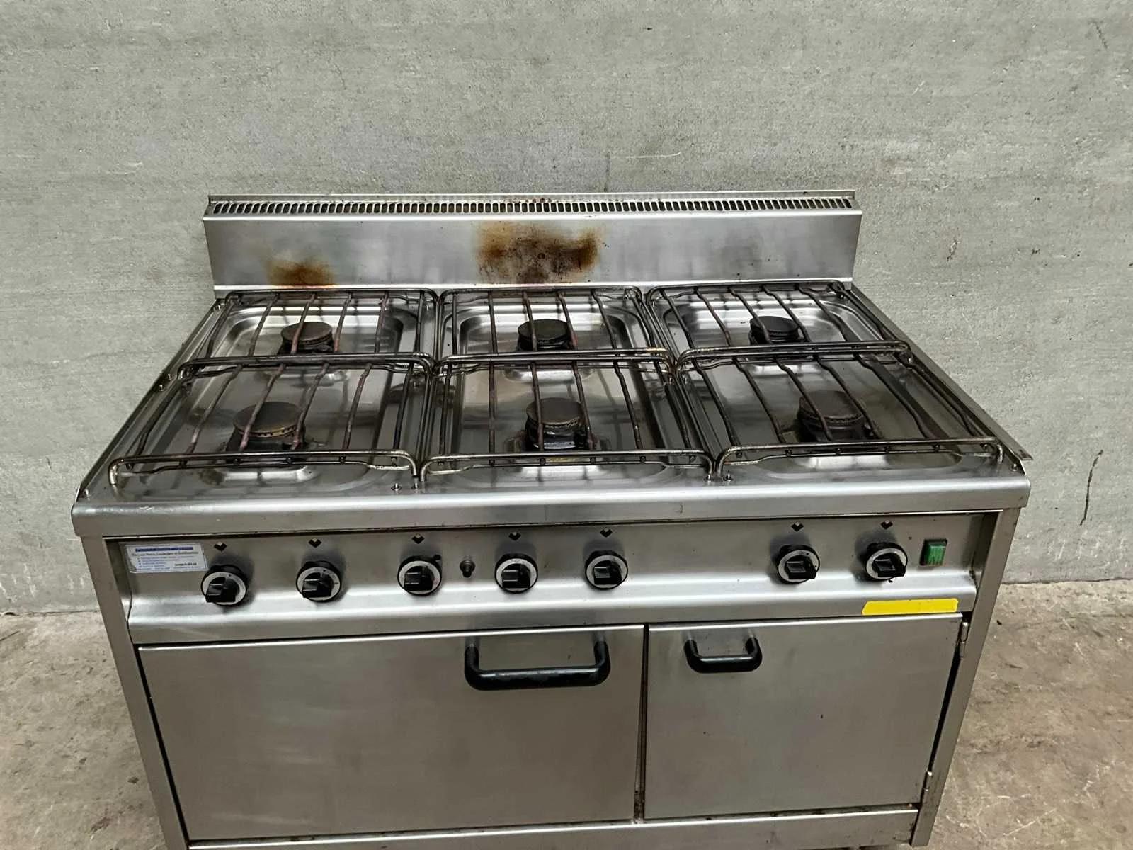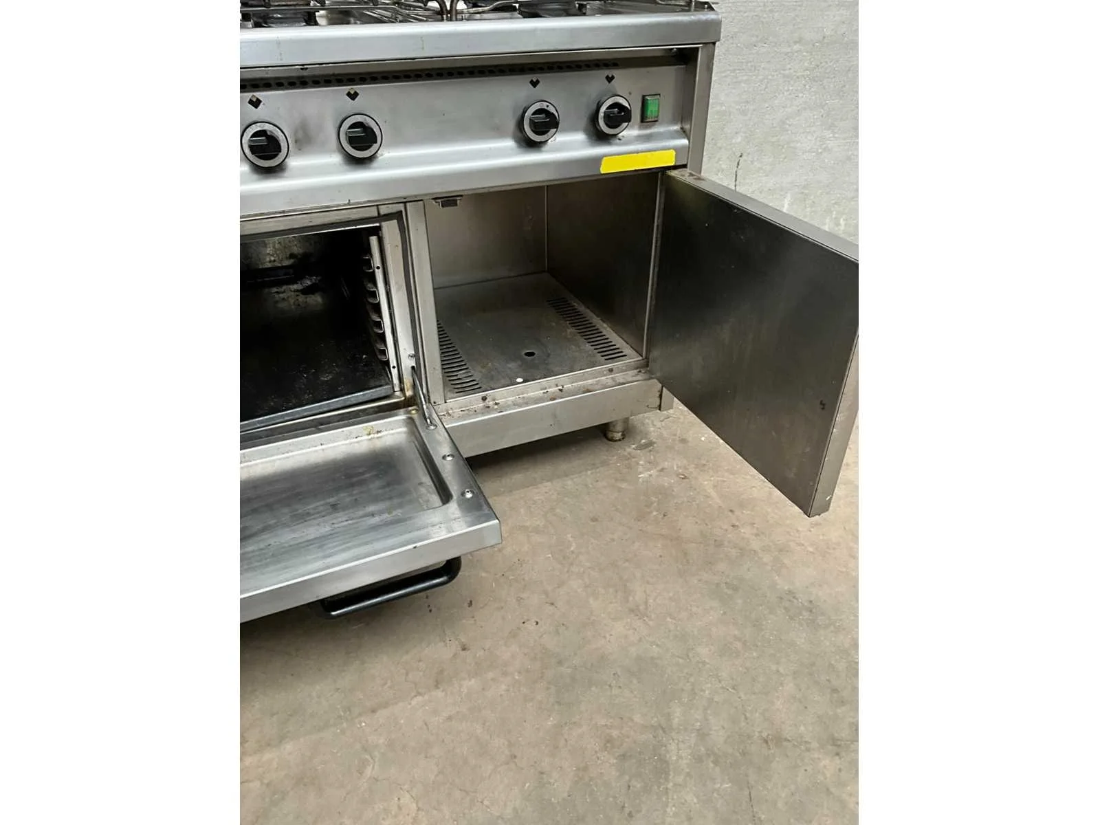 6 pits rvs gasfornuis voorzien van oven en warmhoudkast Totale afmeting Breedte: 78mm Totale afmeting L: 123mm Totale afmeting Hoogte: 101mm