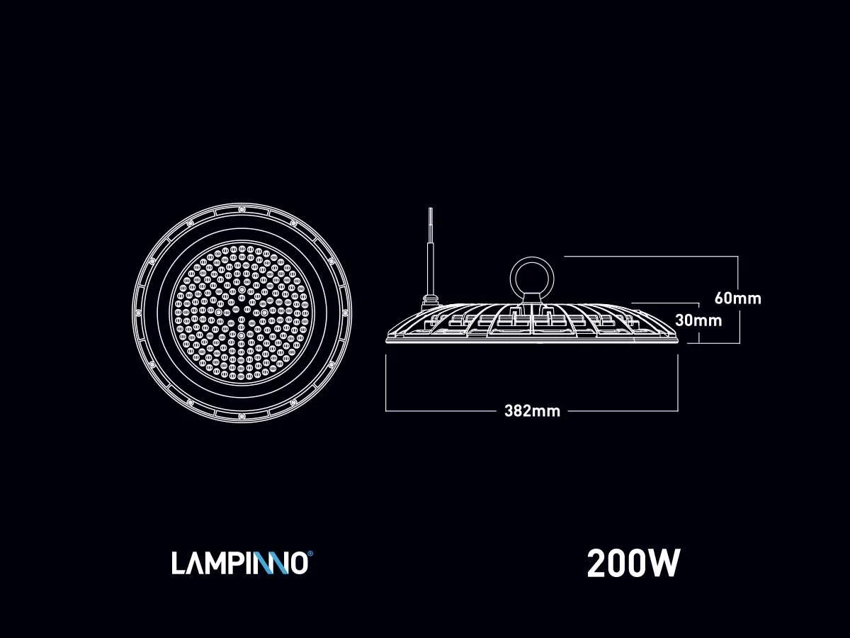 Lichtstroom 21000 lumen SMD LED, met lens, lichtkleur neutraal wit 4000K, afdichting IP65, Lineaire IC driver inbegrepen, flicker free, stralingshoek 90°, product kleur zand zwart, diam Ø 382 x 30mm, materiaal aluminum en PC lens, bevestigingsset niet inclusief, levensduur 25000 uren, voltage 200-240V, het kan in watt en lumen 5% verschil tonen, sku 1022 Merk: LAMPINNO Product type: Industrieel Spanning: 200-240V Kleurtemperatuur: 4000KK Lichtbron: LED Wattage: 200W Kleur: Zand Zwart Breedte: 38.2cmcm Hoogte: 3.0cmcm Materiaal: Aluminium