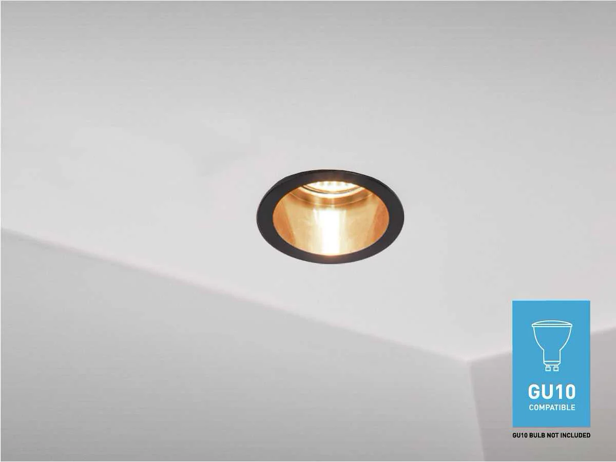 Afdichting IP20, product kleur zand goud zwart, afm. Ø 68 x 50mm, inbouwdiameter ø 60mm, materiaal aluminium, fitting GU10, inclusief keramiek lamphouder, lichtbron bulb niet inclusief, geschikt voor binnen, een bulb invoer, voltage 220-240V, SKU 00913 SKU353 Merk: LAMPINNO Product type: Binnen Fitting: GU10 Kleur: Zwarten goud Lengte: 5.0cmcm Breedte: 6.8cmcm Materiaal: Aluminium