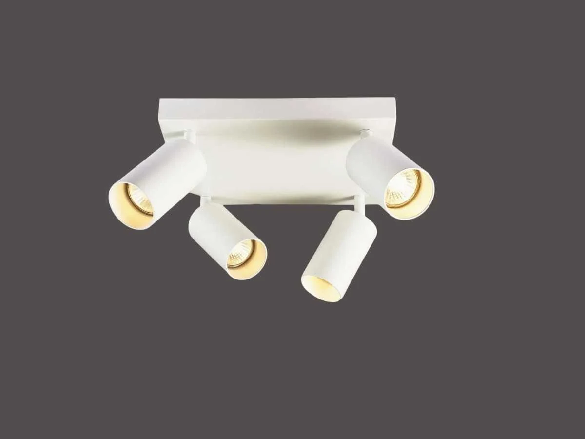 Afdichting IP20, product kleur zand wit, afm Ø 55 x 100mm, afm wandhouder 250 x 250mm, draaibaar 350° en kantelbaar 90°, materiaal aluminum en ijzer, bevestiging inclusief, fitting GU10, bulb niet inbegrepen, geschikt voor binnen, 4 x bulb invoer, voltage 220-240V, max 35 watt, SKU 00851 Merk: LAMPINNO Product type: Binnen Verstelbaar: true Fitting: GU10 Kleur: Wit Lengte: 25.0cmcm Breedte: 5.5cmcm Hoogte: 25.0cmcm Materiaal: Aluminium
