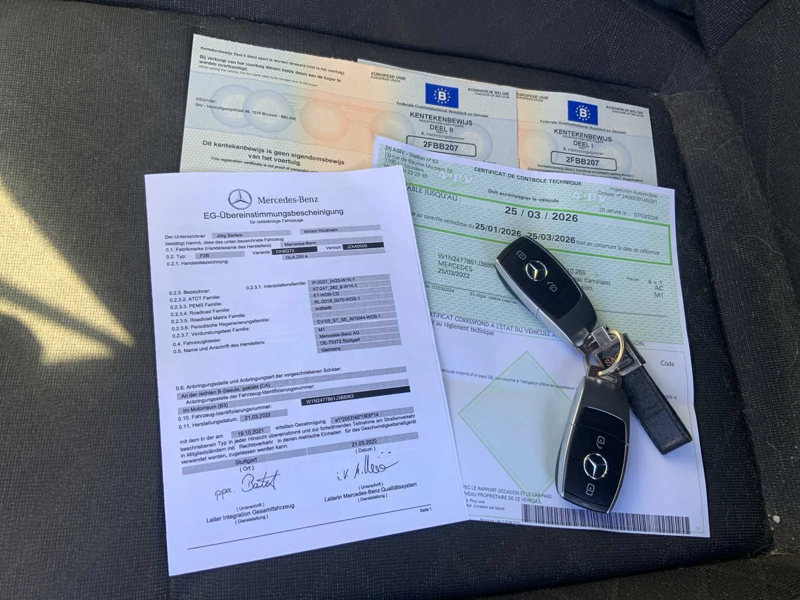 Koetswerkschade volgens leeftijd. Voorzien van achteruitrijcamera. Merk: Mercedes-Benz Model: GLA 250e Bouwjaar: 2022 Afgelezen kilometerstand: 31015km Cilinderinhoud: 1332cc Vermogen (kW): 118kW Brandstof: hybride (elektrisch+benzine) Chassisnummer: W1N2477861J388063 Datum eerste toelating: 25/03/2022 Aantal zitplaatsen: 5 Kleur: Grijs Transmissie: Automaat Aantal deuren: 5 Aantal sleutels: 2 Velgmaat: 18 Nationaliteit documenten: België Start en rijdt: Ja Keuringsrapport geldig tot: 25/03/2026 Andere boorddocumenten: Keuring, gelijkvormigheidsattest oplaadkabel : Ja Airconditioning: true Navigatie: true LED-koplampen: true Leder bekleed: true Inschrijvingsbewijs - deel 1 : Aanwezig Inschrijvingsbewijs - deel 2: Aanwezig