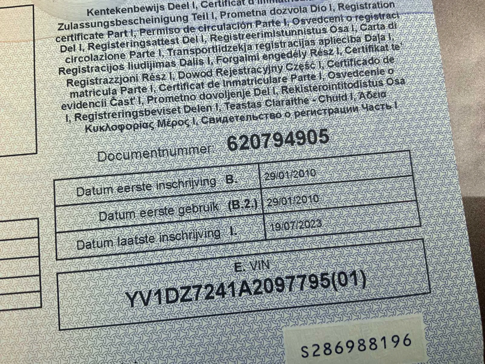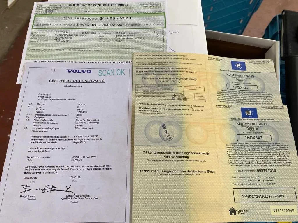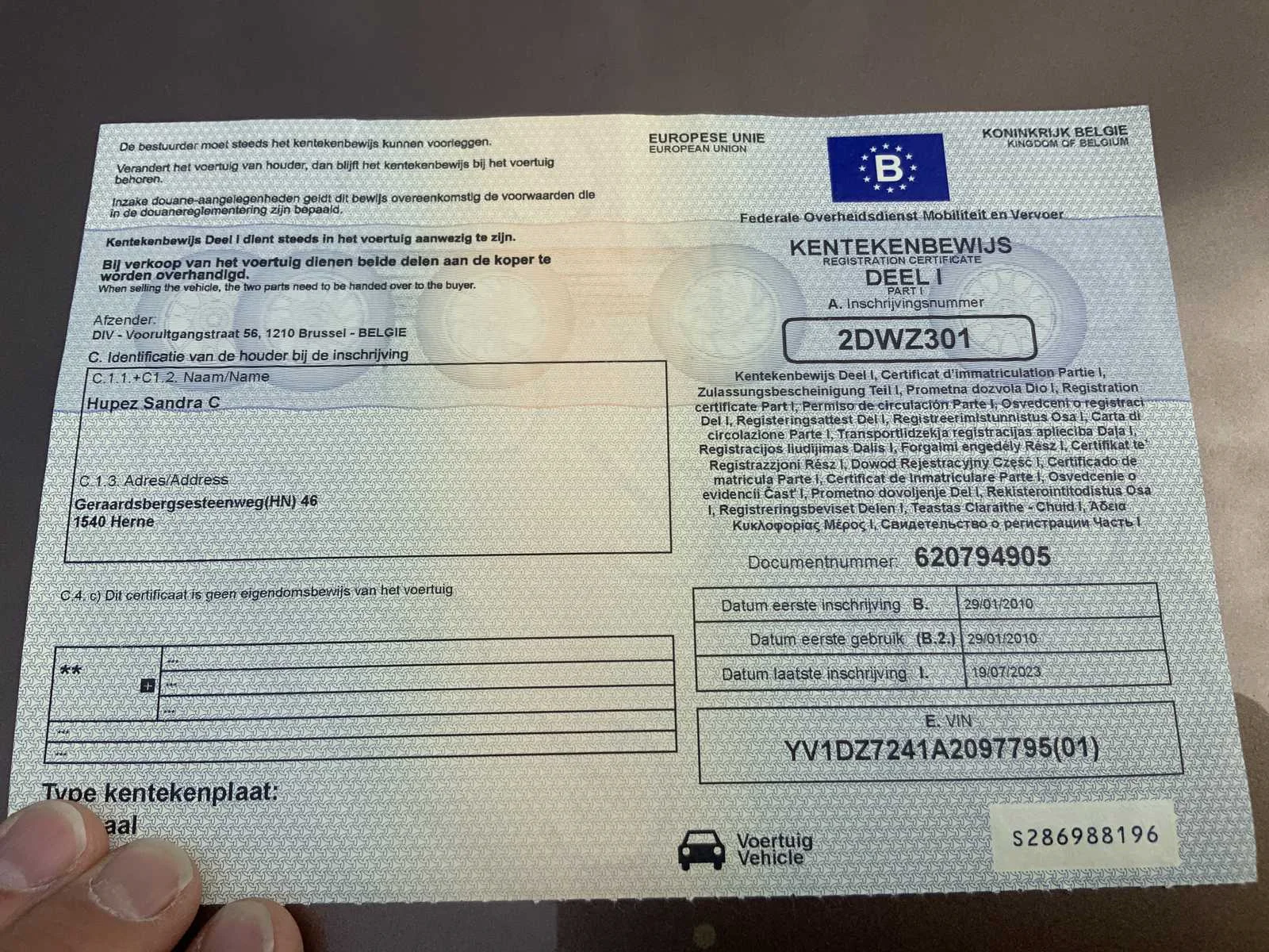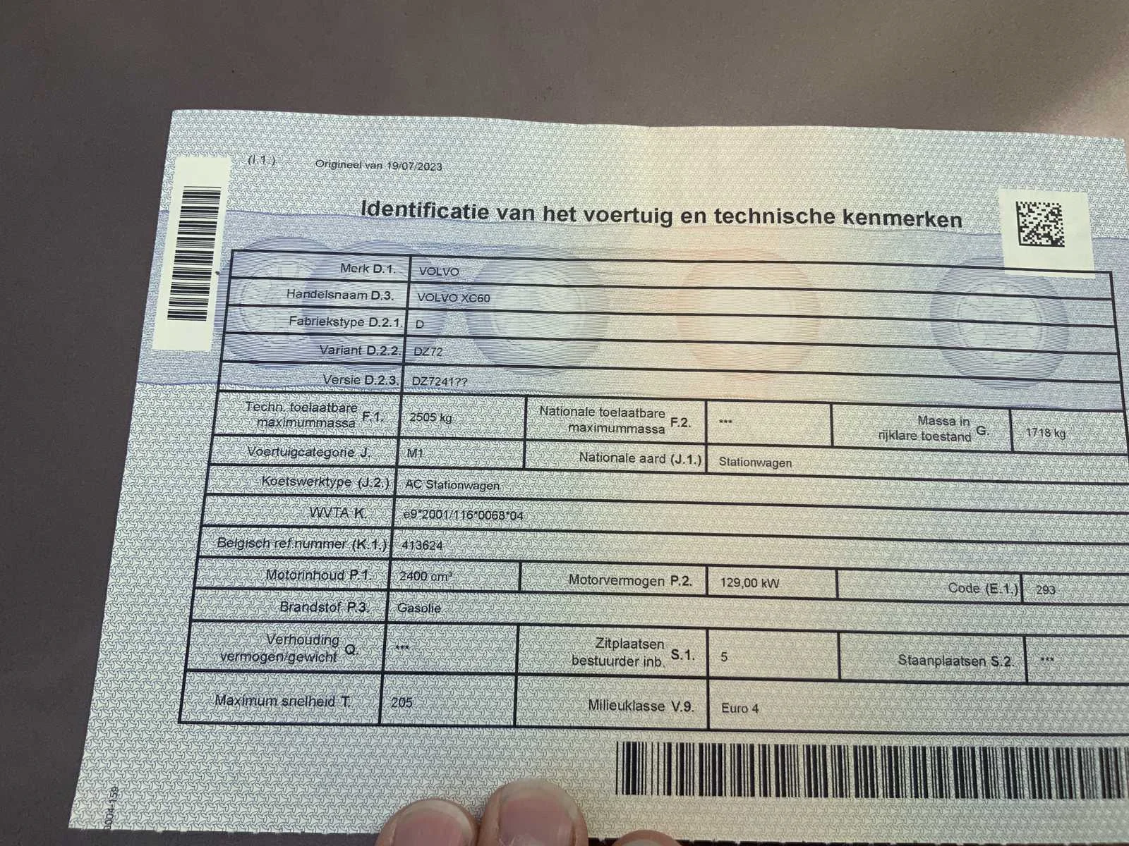 Gelijkvormigheidsattest en boorddocumenten aanwezig, geeft electronische foutmelding Cfr. Foto’s, voorzien van trekhaak, steenslag in voorruit, winterbanden Merk: Volvo Model: XC60 Bouwjaar: 2010 Afgelezen kilometerstand: 170872km Cilinderinhoud: 2400cc Vermogen (kW): 129kW Brandstof: Diesel Chassisnummer: YV1DZ7241A2097795 Datum eerste toelating: 29/01/2010 Aantal zitplaatsen: 5 Transmissie: Handgeschakeld Emissieklasse: Euro4 Aantal deuren: 5 Aantal sleutels: 1 Gelijkvormigheidsattest aanwezig: true Airconditioning: true Leder bekleed: true Inschrijvingsbewijs - deel 1 : Aanwezig Inschrijvingsbewijs - deel 2: Niet aanwezig