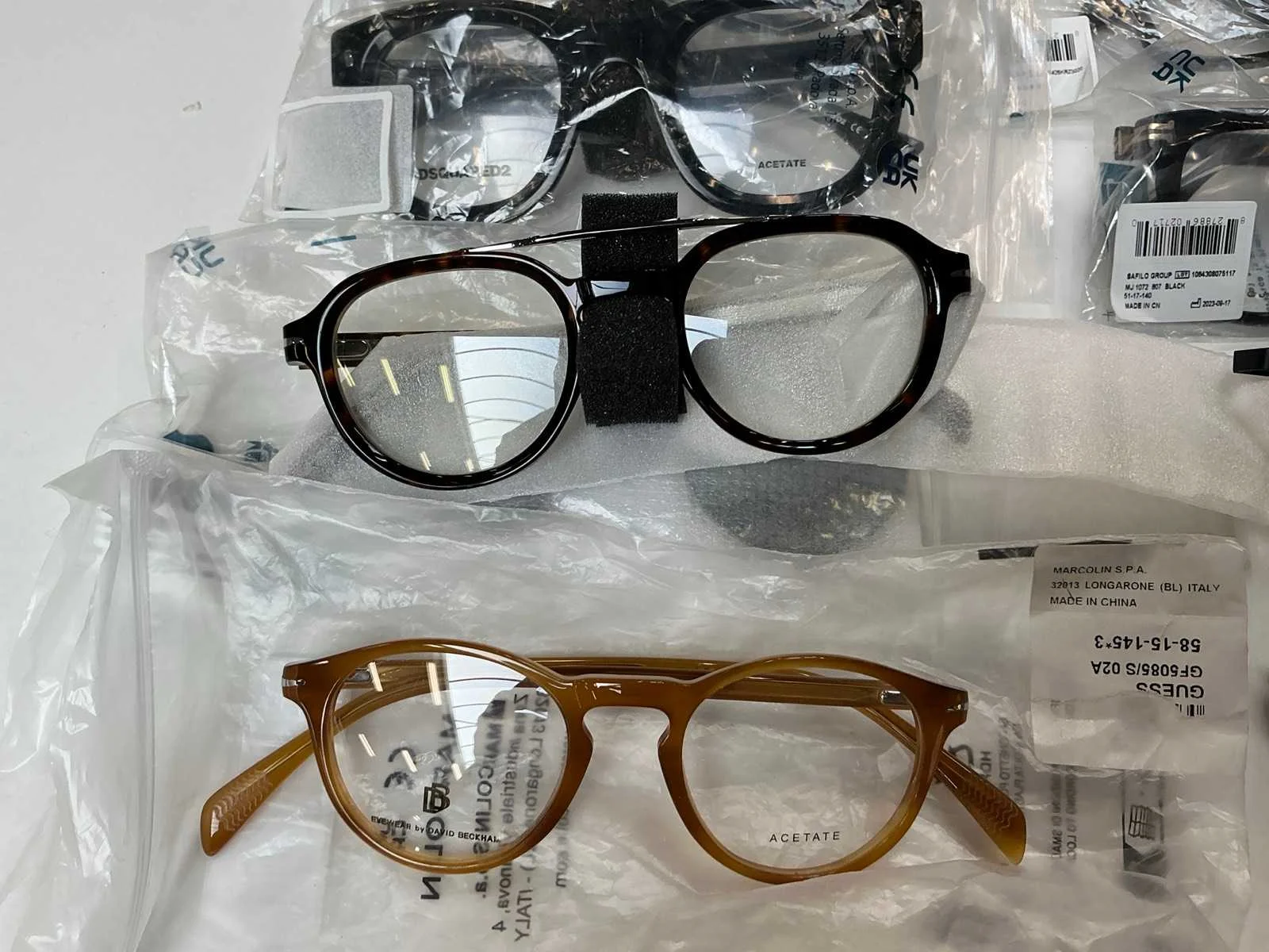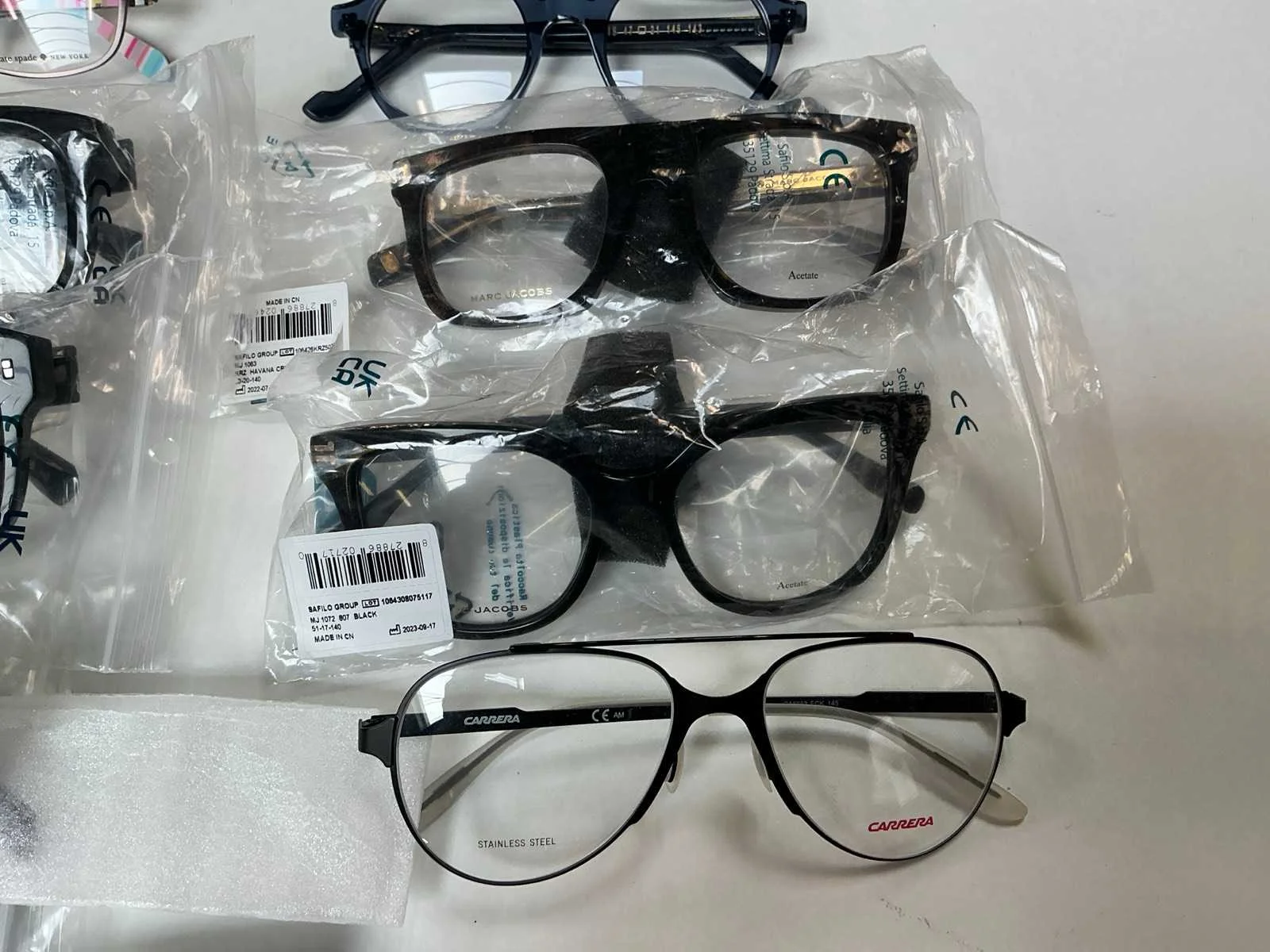 Met glas zonder sterkte, 2x Carrera, 2x Marc Jacobs, 3x SFL Firenze, 5x David Beckham, 2x DSquared2, 6x Kate Spade